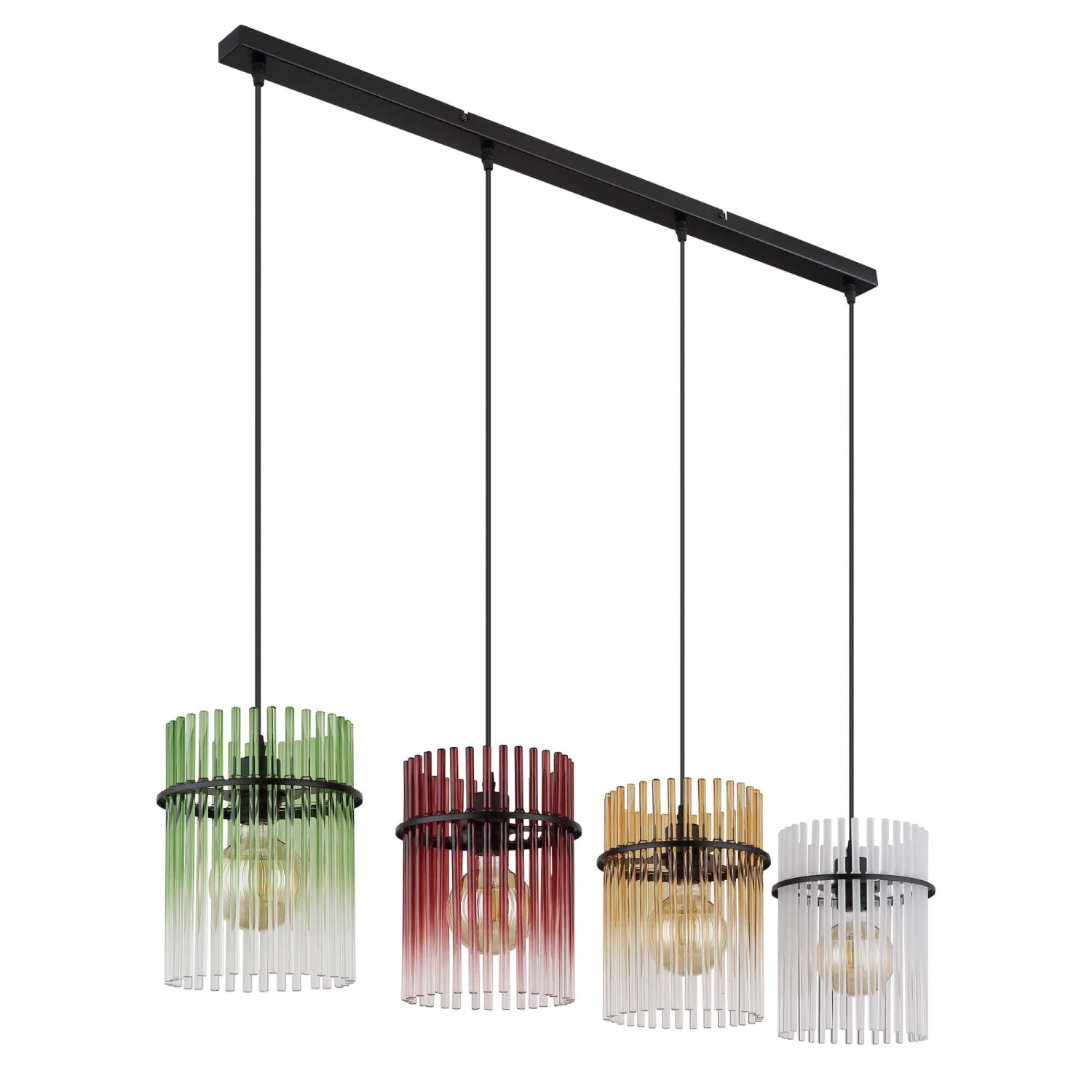 Icelle Matt Black & Multicoloured Fade Glass Rods 4 Light Bar Pendant