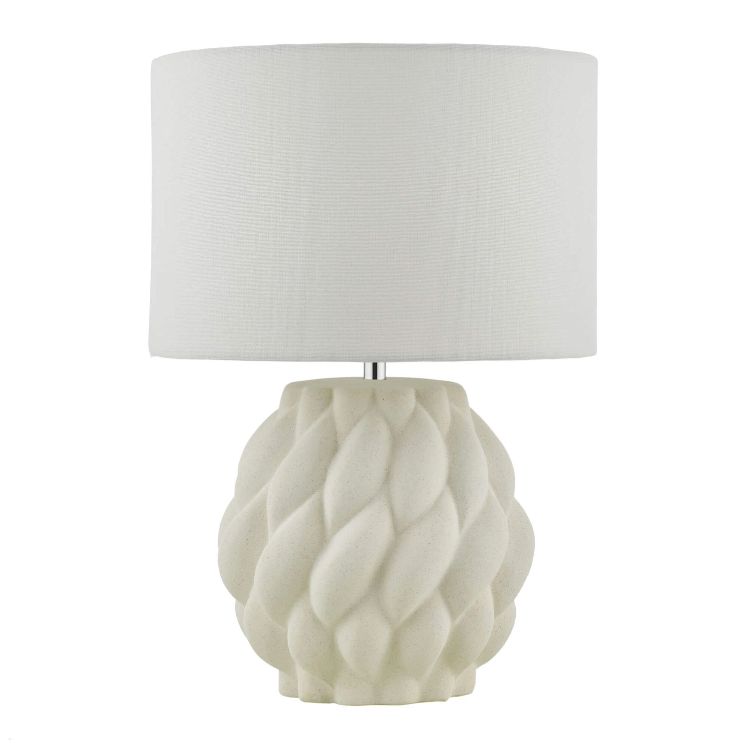 Add a touch of minimalist elegance to your home with this Idonia White Table Lamp With Shade, inspired by a jumbo size ball of yarn. Illuminable by an E27 LED bulb, this captivating table lamp features a white linen shade with a white textured stone effect ceramic base, creating a warm and inviting ambience. Operated by an inline rocket switch with a braided white cable, this stylish table lamp is perfect for adding charm and purity to any modern or neutral interior with its clean and sophisticated look.