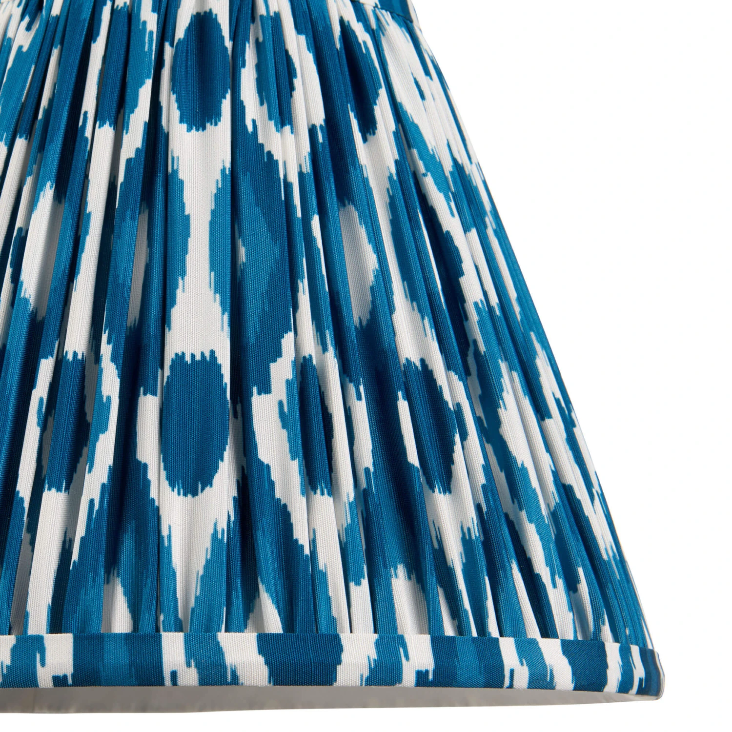 This Ikat Marine Blue Light Shade takes a classic item and adds a unique blue pattern to create a modern twist. This shade is handcrafted to ensure the highest quality finish and features a taped edge for extra detail. The shade will turn your lamp into a statement piece in your room.