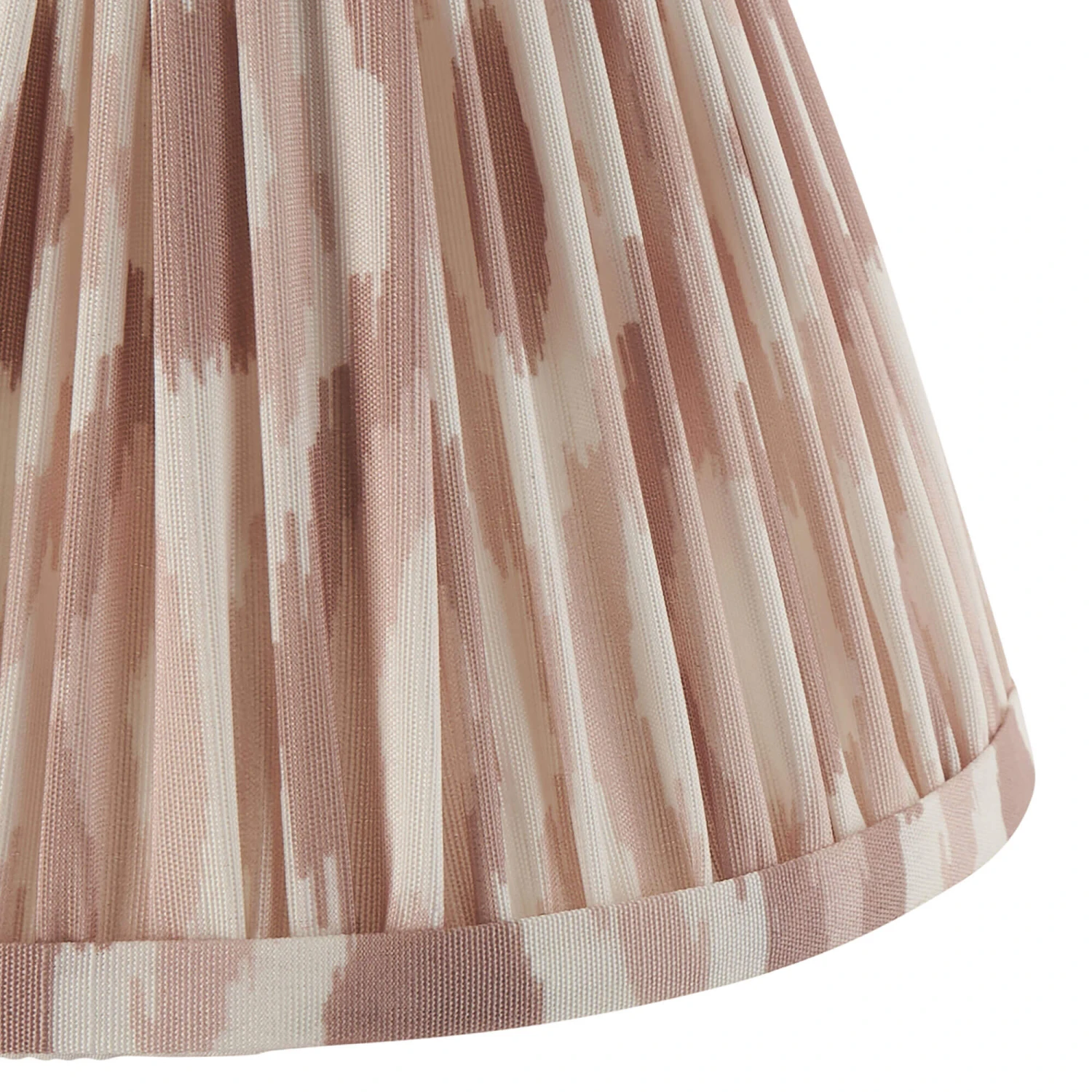 This Ikat Neutral Light Shade takes a classic item and adds a unique pink and cream pattern to create a modern twist. This shade is handcrafted to ensure the highest quality finish and features a taped edge for extra detail. The shade will turn your lamp into a statement piece in your room.