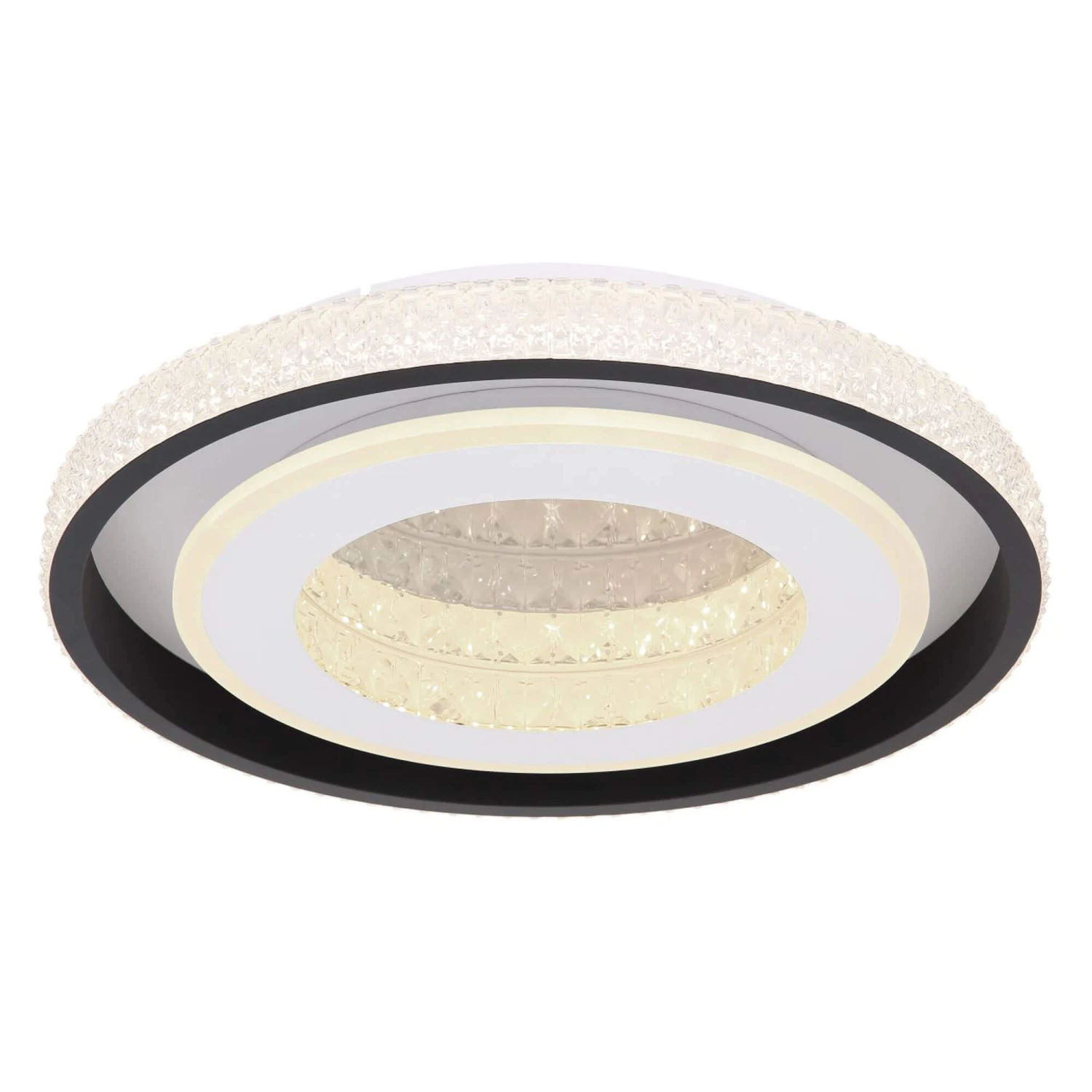 The Infinate LED flush ceiling light is intricate and elegant, with a round black metal shade covered in acrylic crystals and further centre crystal decoration. The flush fitting is illuminated by the latest energy saving LED technology, and the light bounces off the clear crystal balls to make the entire piece sparkle beautifully when illuminated. Equipped with an included remote control, you can individually determine the luminaire from warm white to cold white light and also has a memory function, a night mode and can be dimmed or fixed.
