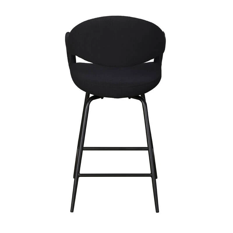 The Copenhagen counter stool complements a wide range of home aesthetics the black boucle fabric adds a soft touch while the complimenting matte black legs create a luxurious monochromatic contrast.