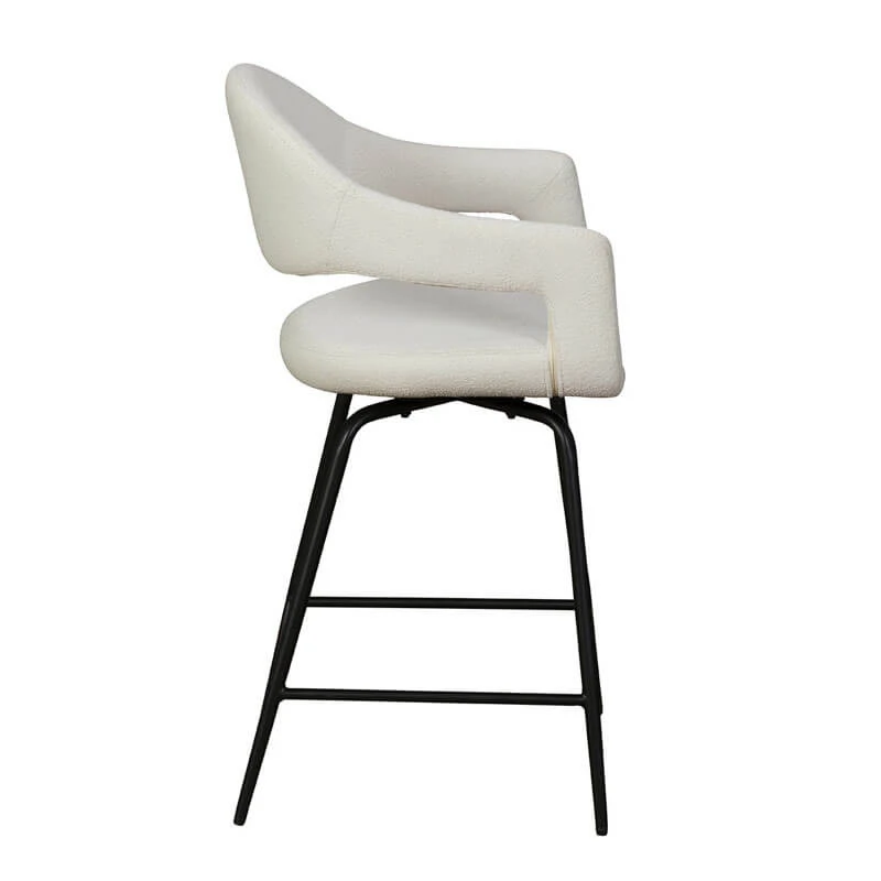 The Copenhagen counter stool complements a wide range of home aesthetics the white boucle fabric adds a soft touch while the matte black legs create a monochromatic contrast.