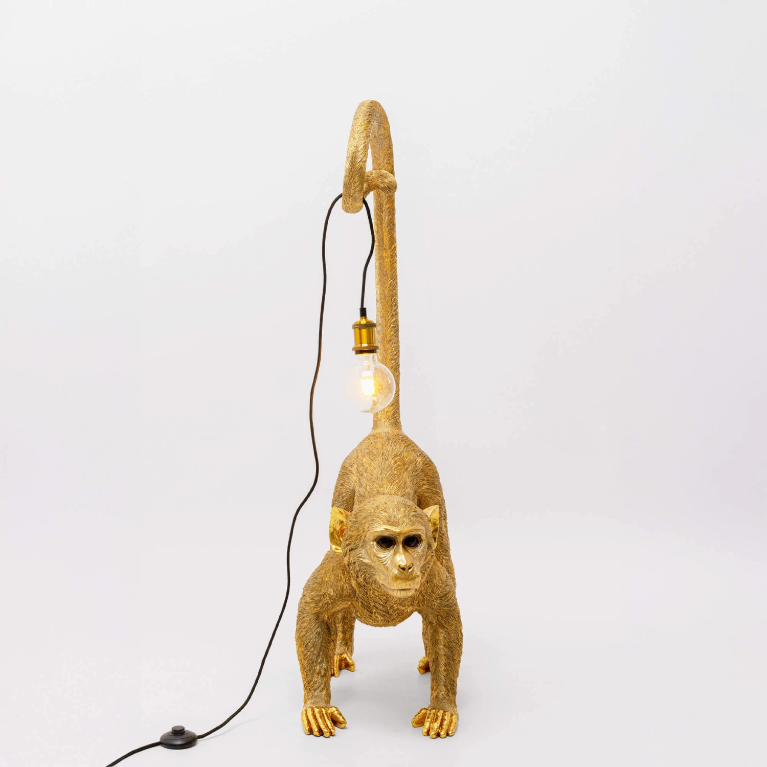 The Monkey Dance Floor Lamp is a cheeky and characterful addition to any interior, bringing a playful charm that instantly enlivens your space. This delightful piece features a mischievous monkey with piercing black eyes and shiny gold hands and feet, expertly crafted from polyresin with an elegant antique gold finish. Its unique design captures a sense of fun and whimsy, making it a perfect decorative accent for those who appreciate quirky yet sophisticated home accessories.