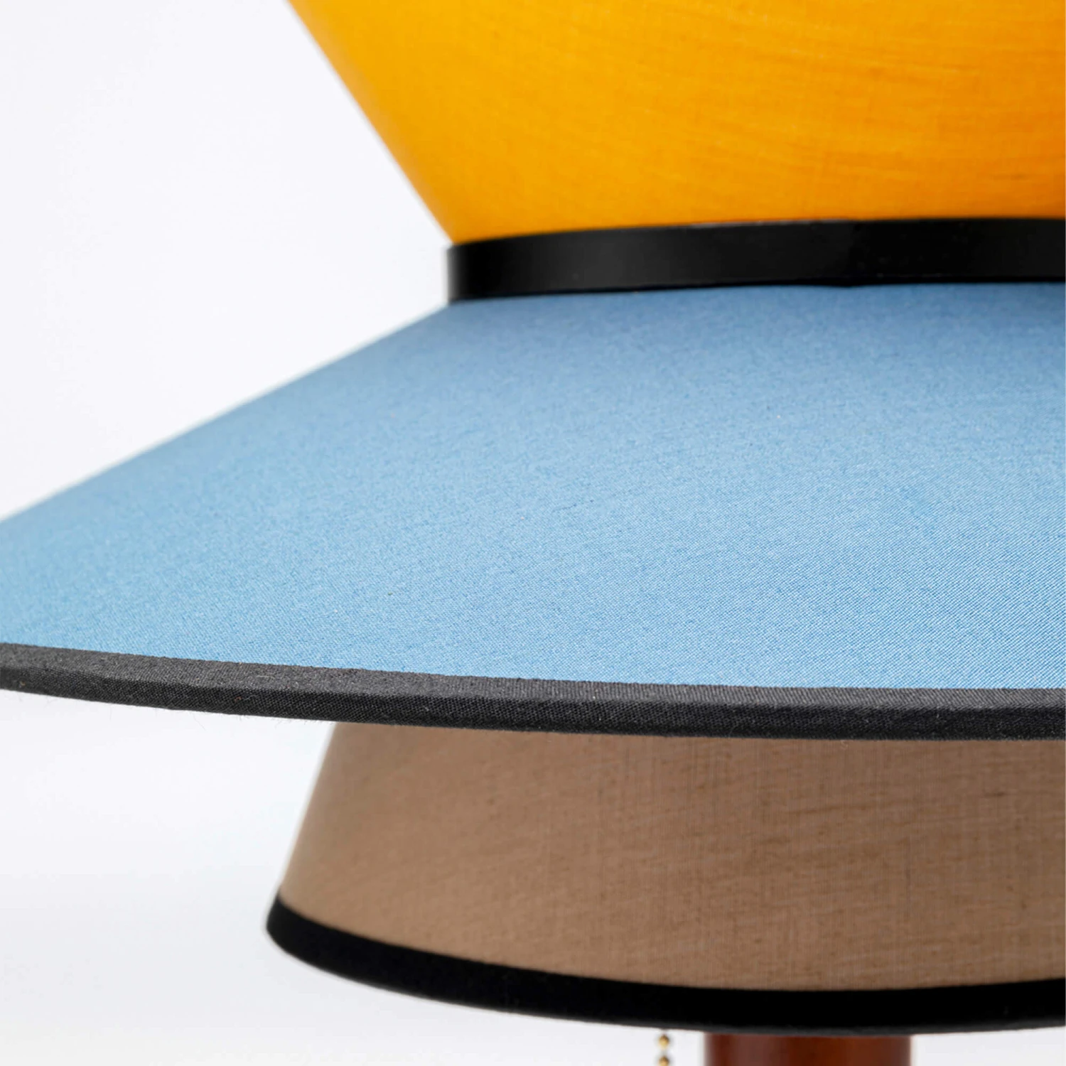 A vibrant, mid century inspired table lamp that features a bright coloured shade crafted from cotton. The light has an oriental feel about them with warm tones and distinct, unique design. With each light featuring a soft cotton shade, it diffuses the lights creating a soft glow, pairing wonderfully with a warm coloured bulb.