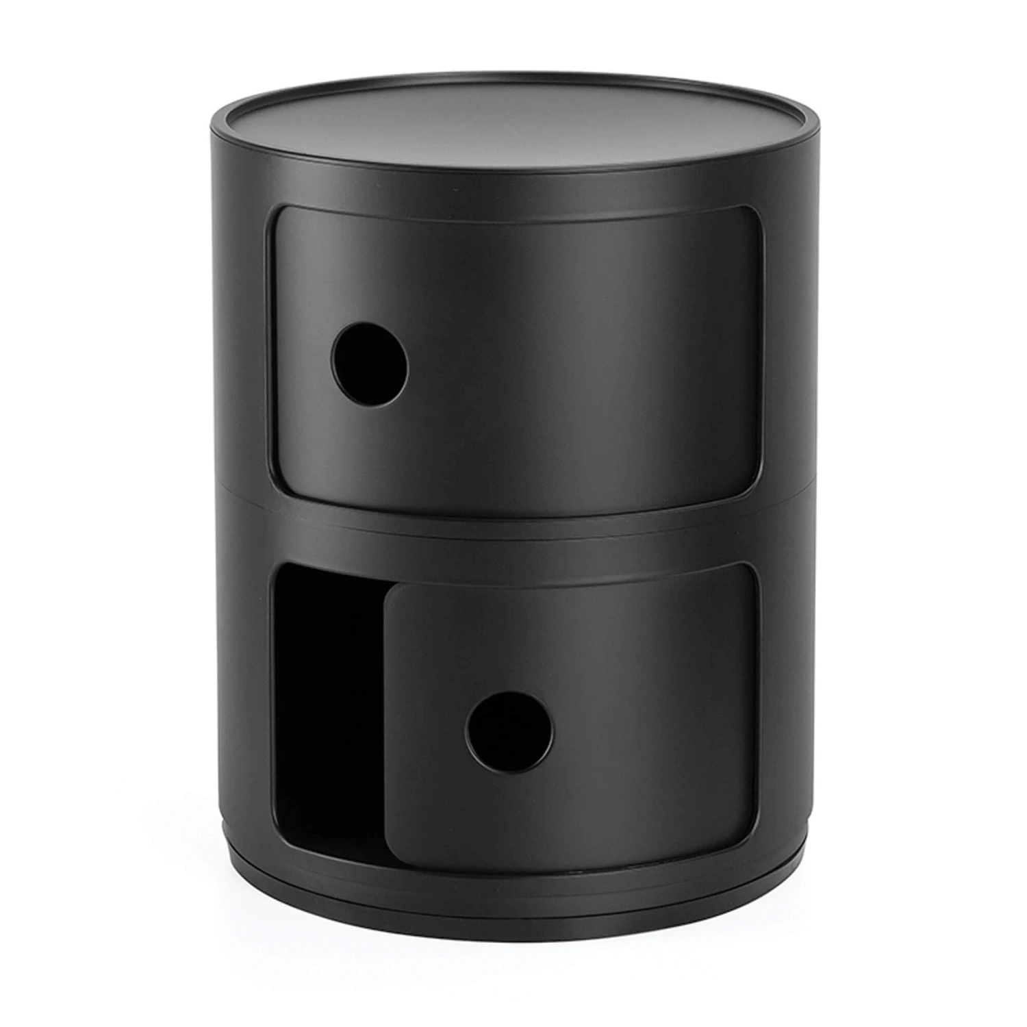 A timeless furnishing classic designed with flexi-living and functionality in mind, the Kartell Componibili Black Recycled 2 Drawer Unit offers versatility with its adaptable design, which is comprised of 2 modules that can be stacked or used separately, so you can make the most of the space you have available. Each module features a sliding drawer front, so the internal storage section can be easily accessed. The simplistic round shape is ultra-modern in appearance and finished in a soft touch, black matte finish that will translate well with many décors and colour schemes.