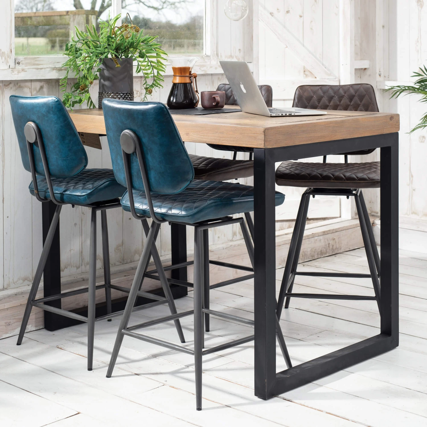 The Kiara Dark Blue Faux Leather Bar Chair combines contemporary design with an industrial vibe and makes the perfect finishing touch for your kitchen or dining space. Each chair is meticulously created from a faux leather fabric, finished in a dark blue colour to add interest to any interior colour scheme.