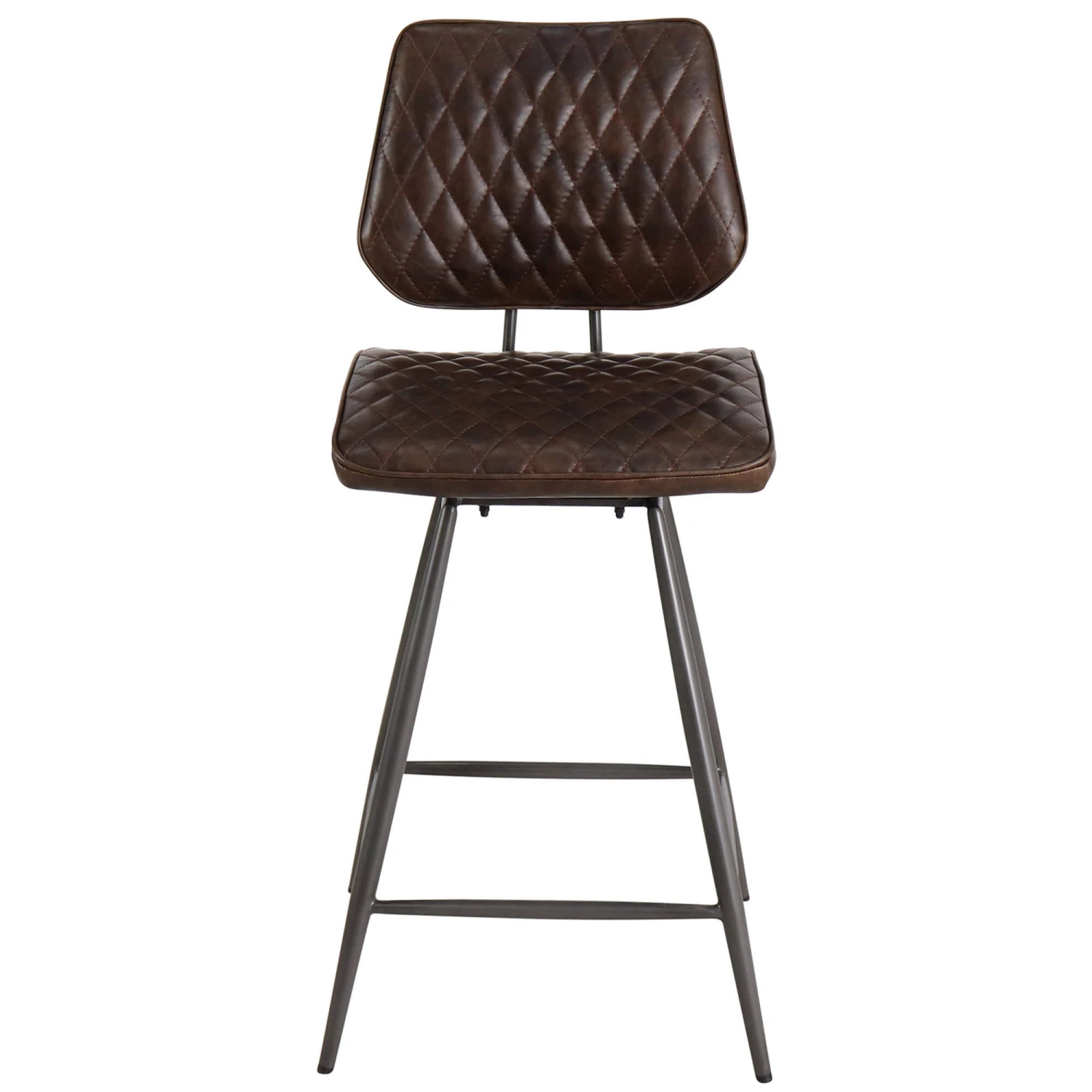 Uniting comfort with industrial chic design, the Kiara Dark Brown Faux Leather Bar Chair is as inviting as it is trendy. Featuring a grey steel frame, a curved padded backrest and upholstered in a beautiful soft faux leather with quilted effect, diamond stitch detailing, the Kiara is striking in appearance with its contemporary urban design, yet offers an optimum level of comfort. The variations in tone of the dark brown faux leather fabric lend this dining chair its authentic rustic feel, making it perfect for enhancing the homely ambience of any contemporary home, whilst making a modern stylish statement