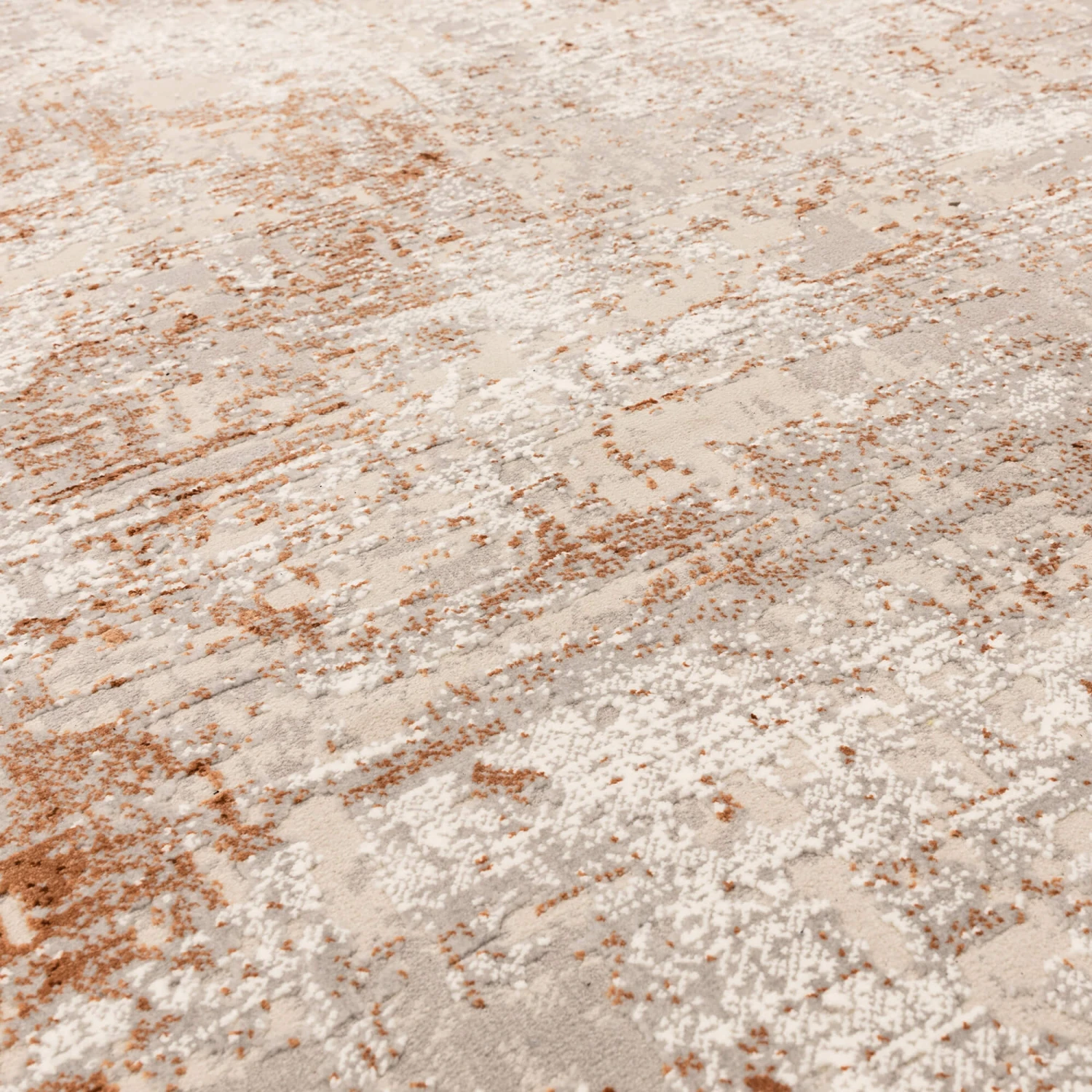 An industrial style rug collection. Made from a mixture of polyester and polypropylene these contemporary rugs make for a stunning centrepiece for your home. The orange tones promote warmth and makes your room feel more cosy.