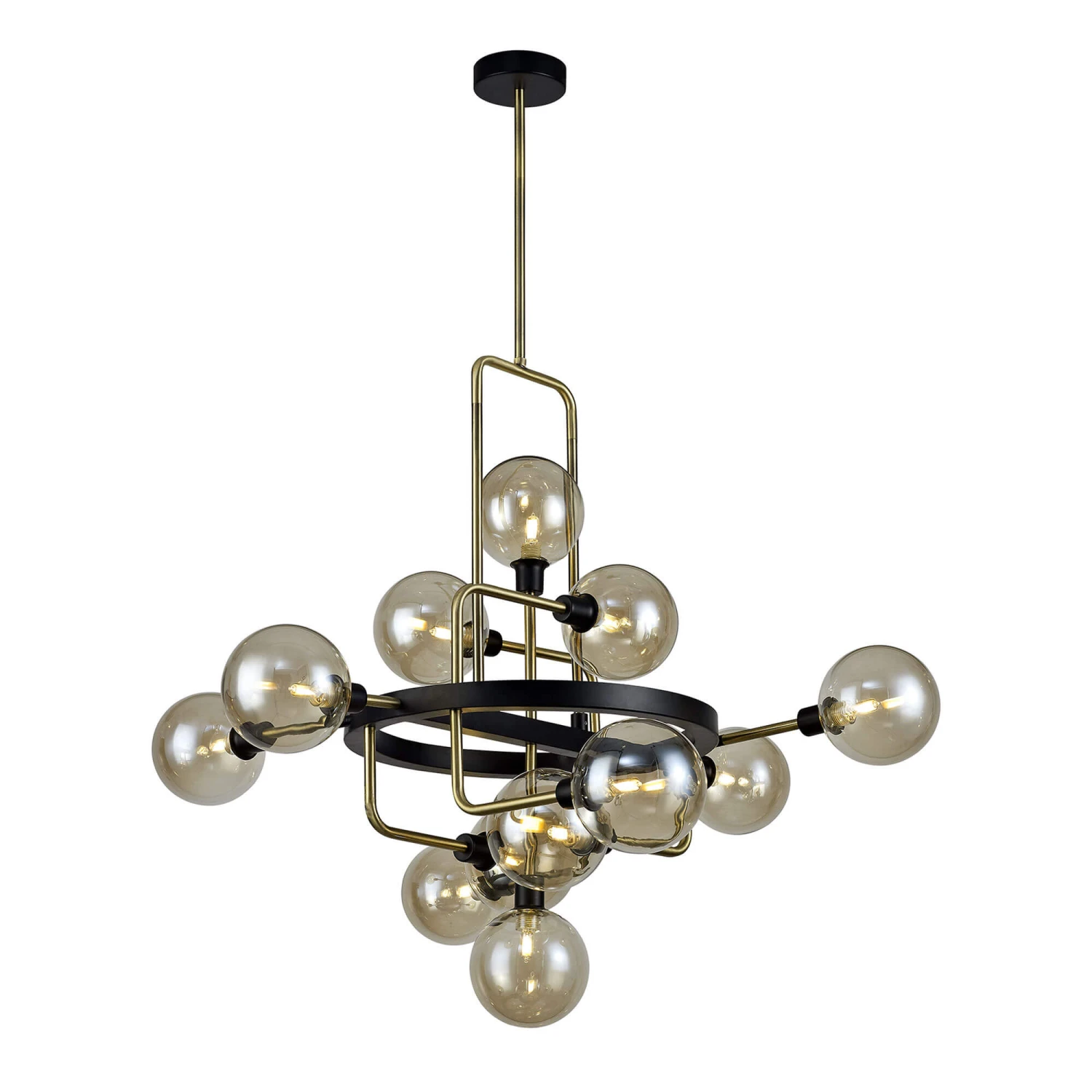 This ultra modern Laquila Pendant Light features 12 globe bulbs in a pipeline-inspired design. The iron frame is finished in antique brass for an urban industrial aesthetic, ideal for any contemporary living space. The light fixture has 12 G9 sockets for energy efficient LED bulbs to create a stunning illumination through the cognac glass spherical shades. The Laquila measures 78cm in diameter and has a maximum drop of 140cm, perfect for creating a dramatic look in any room; add a contemporary focal point in an entry way or living room, or a statement look above a dining room.