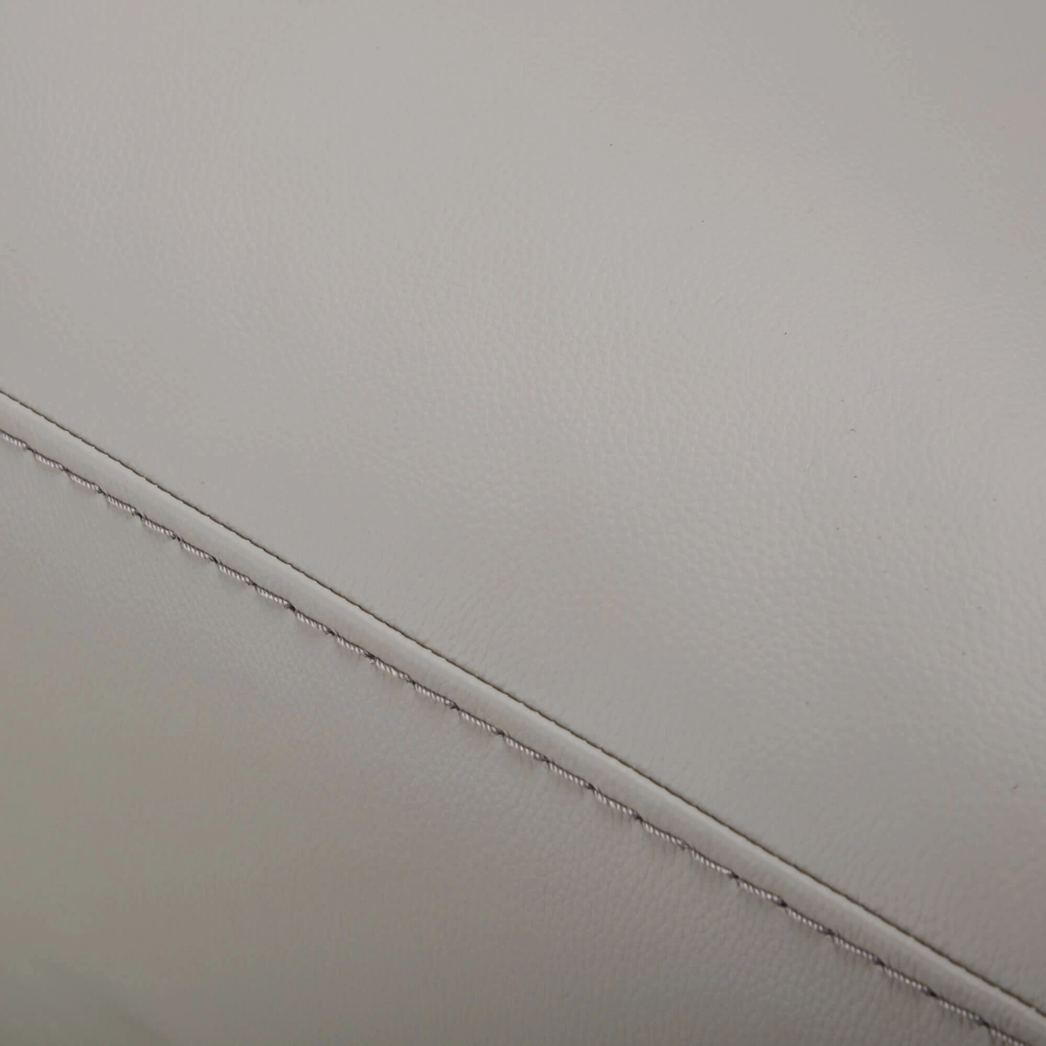 The Lariano Light Grey Leather Armchair is minimalist and contemporary in design. Upholstered in a charming light grey leather, the Lariano features stitch detailing arms and back, a generously padded back and seat cushion, and black metal legs, creating a clean and welcoming look.