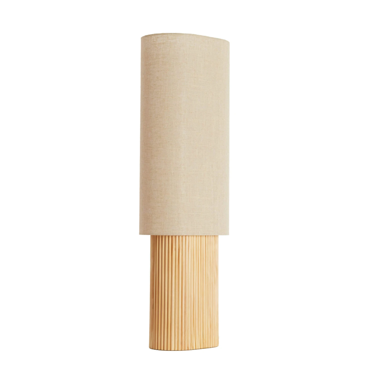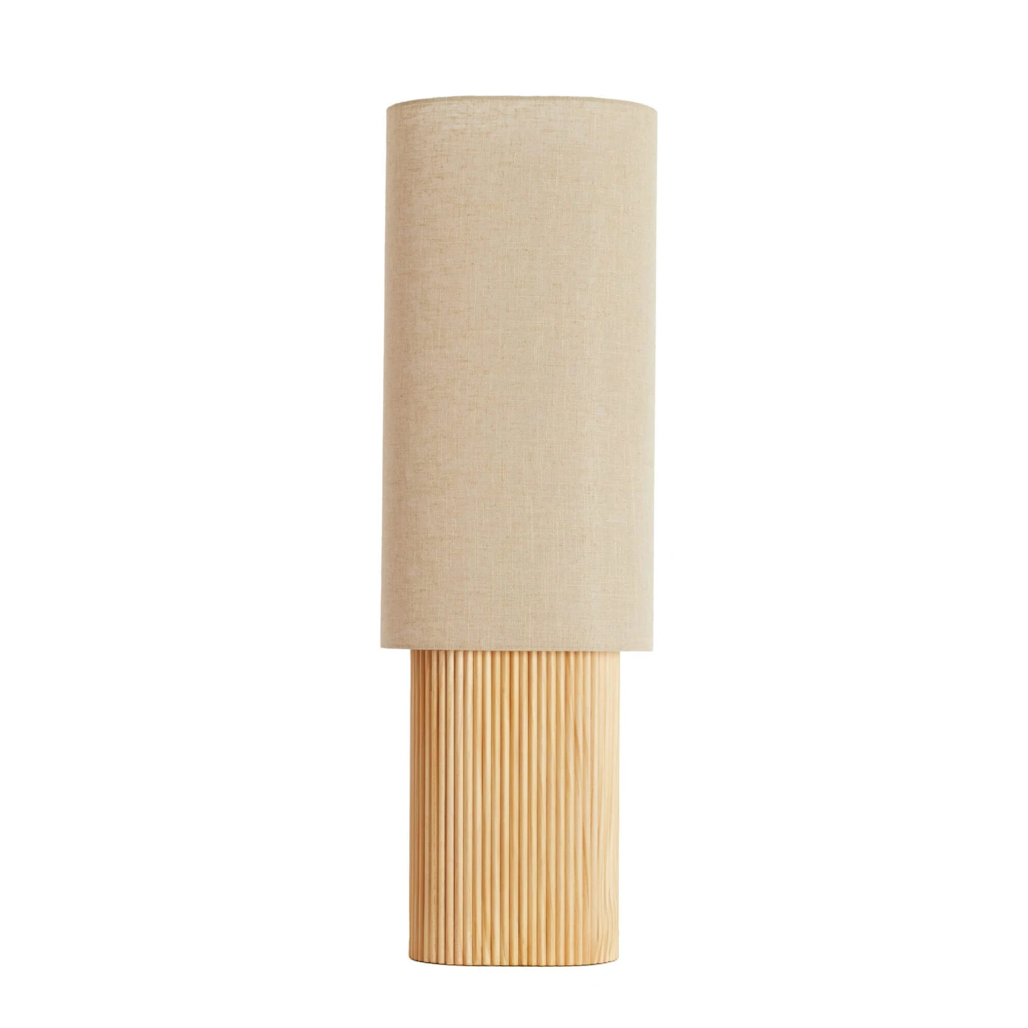 Bring understated elegance and natural warmth to your living space with this Laslo Natural Wood 94cm Table Lamp With Linen Shade. Illuminable by a required E27 bulb, this charming table lamp features a tall cylindrical natural linen shade with a natural ribbed wooden base, offering a harmonious balance of texture and tone while providing a gentle and warm glow. Available in various sizes, this stunning table lamp is operated by a rocker switch and is perfect for creating a calm and inviting atmosphere to any contemporary or classic interior with its minimal yet striking design and clean, Scandinavian-inspired look.