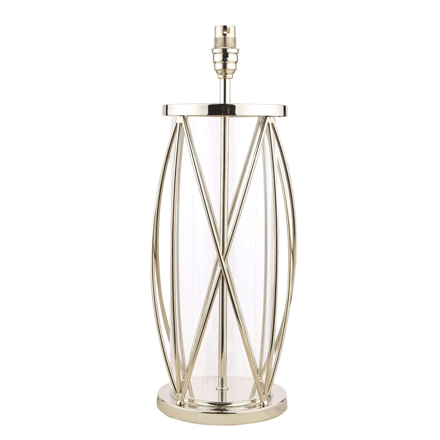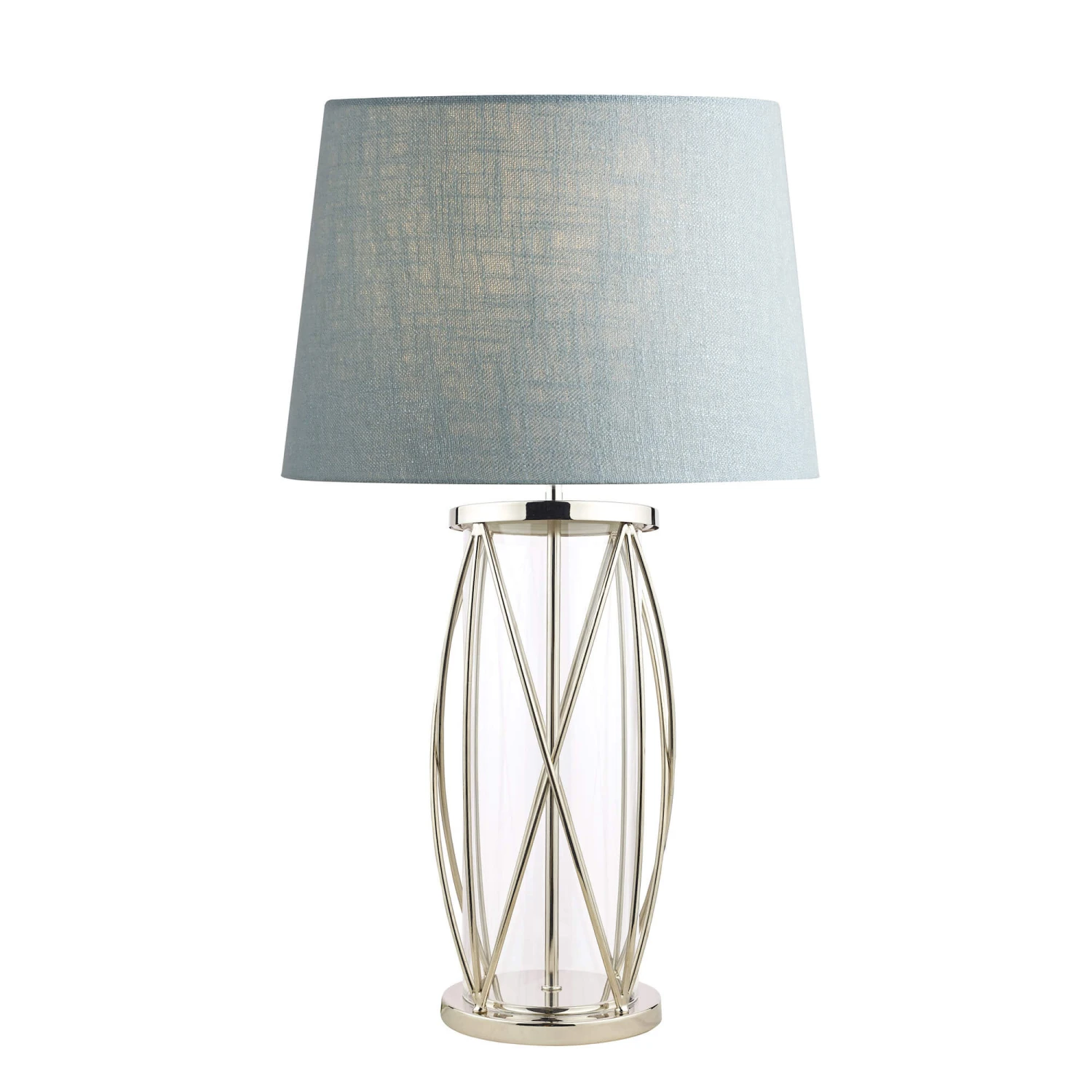 Brighten any corner of your home & add a sophisticated, elegant touch to bedside tables, consoles and more, with the beautiful Beckworth table lamp base from the Laura Ashley collection. Made from polished nickel and glass and featuring a clear glass cylinder with a decorative, lattice effect casing, the lamp has a timeless appeal that will complement any home interior scheme. It has a clear cable making it fit in with any environment. Customise the look of your lamp with a choice of lamp shades – we recommend a 40cm for this base, and a 60w max B22 GLS bulb. Suitable for indoor use only.