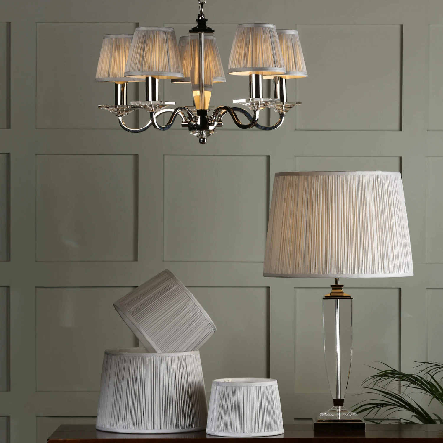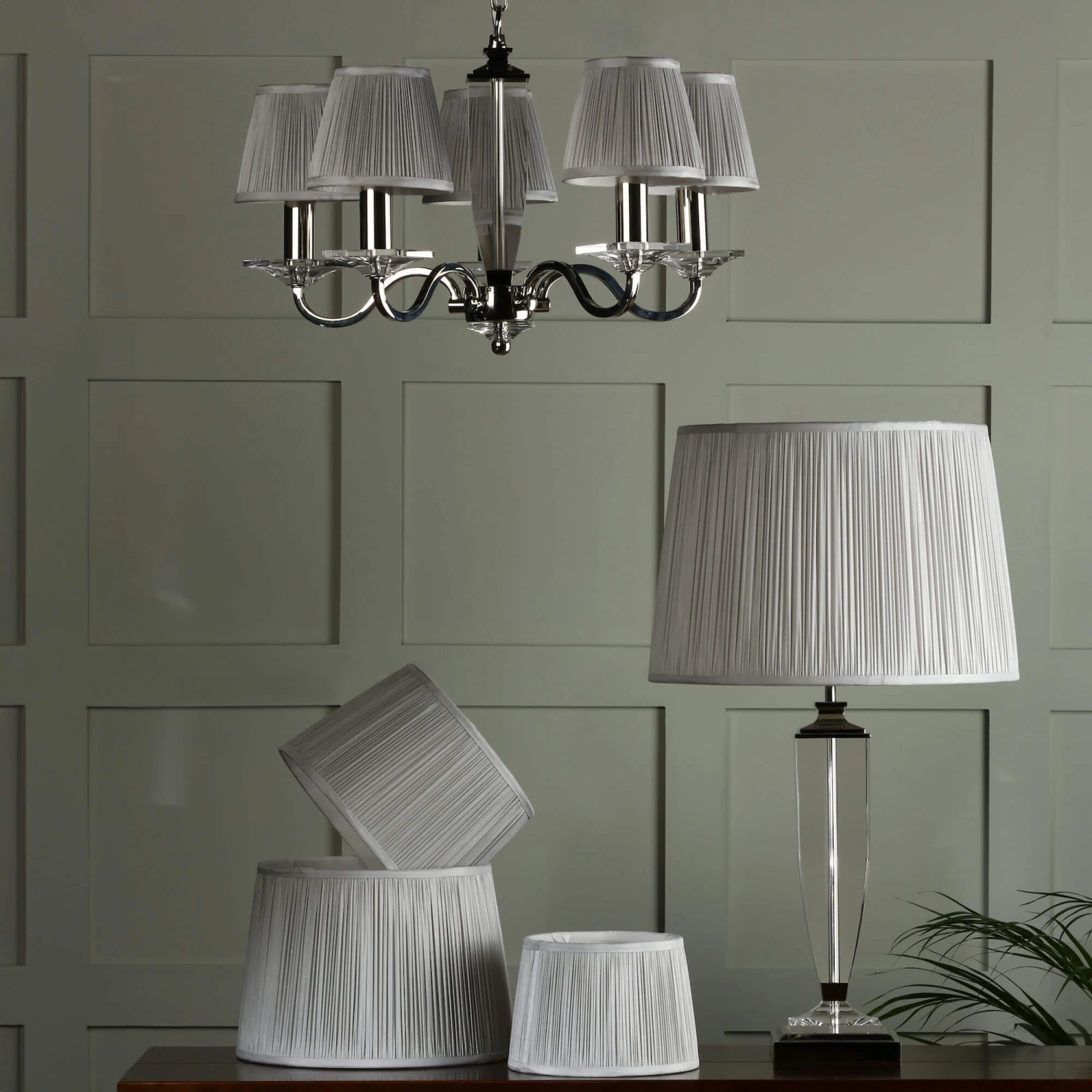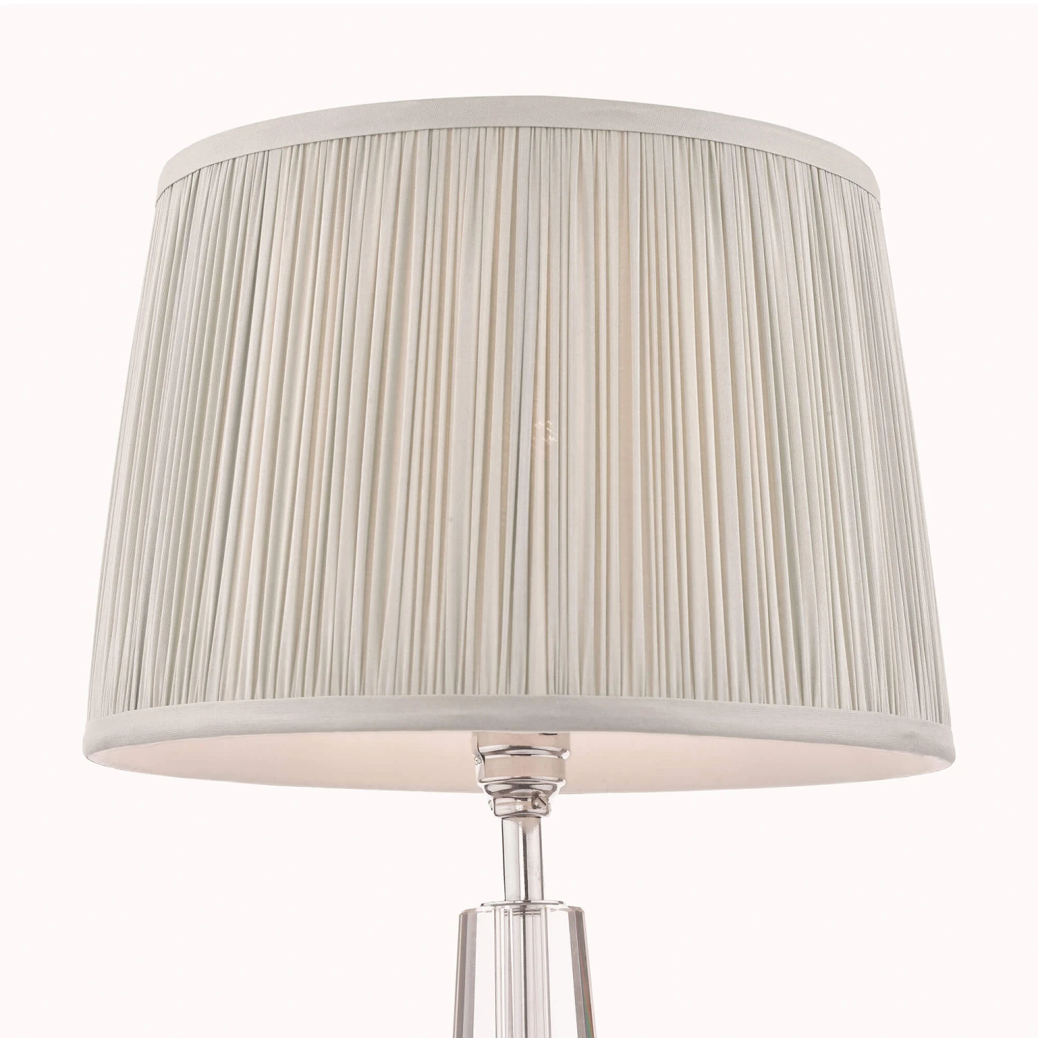 Create a warm but delicate glow for your home with this Hemsley Silver Pleated 30cm Shade from Laura Ashley. Made from 100% silk, this lamp shade features a classic and slightly angled Empire drum form to beautifully fit any lamp base compatible with a diameter size of 30cm. Available in four colours; charcoal, cream, sage and silver, and in two sizes; 30cm and 40cm, this stunning lamp shade is finished with a elegant and pleated smooth silk lining, making it perfect for adding a elegant and contemporary touch while softly illuminating any room.