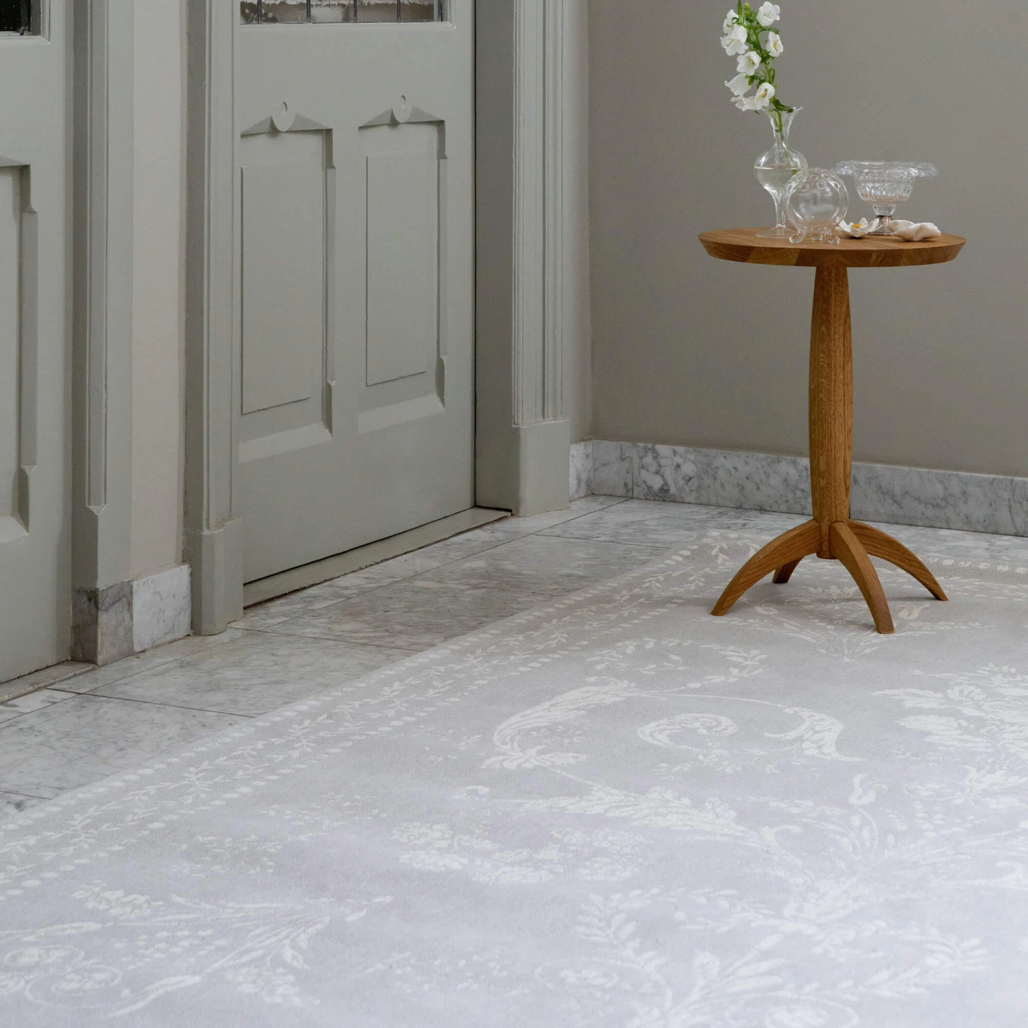The rug was inspired by a printed silk left in Laura Ashley’s archive. The designers wished to evoke a sense of classicism whilst retaining that contemporary look.