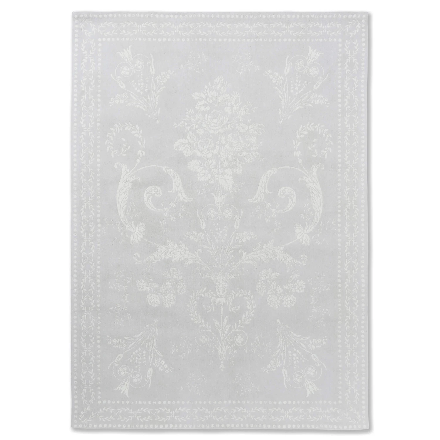 A 170x240cm cotton rug with a timeless design. Depicting elegant chandeliers, its signature pattern portrays simplicity and glamour.