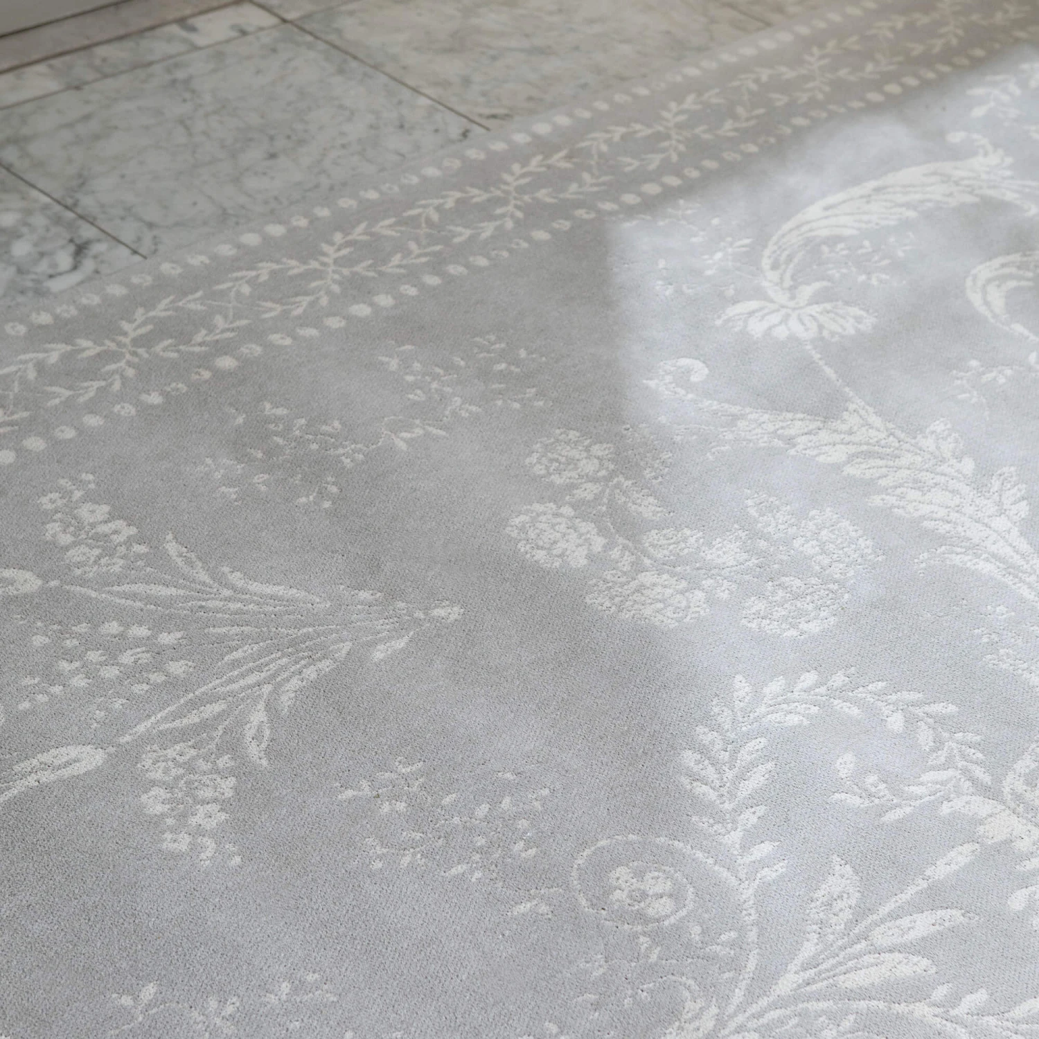 The rugs were inspired by a printed silk left in Laura Ashley’s archive. The designers wished to evoke a sense of classicism whilst retaining that contemporary look.