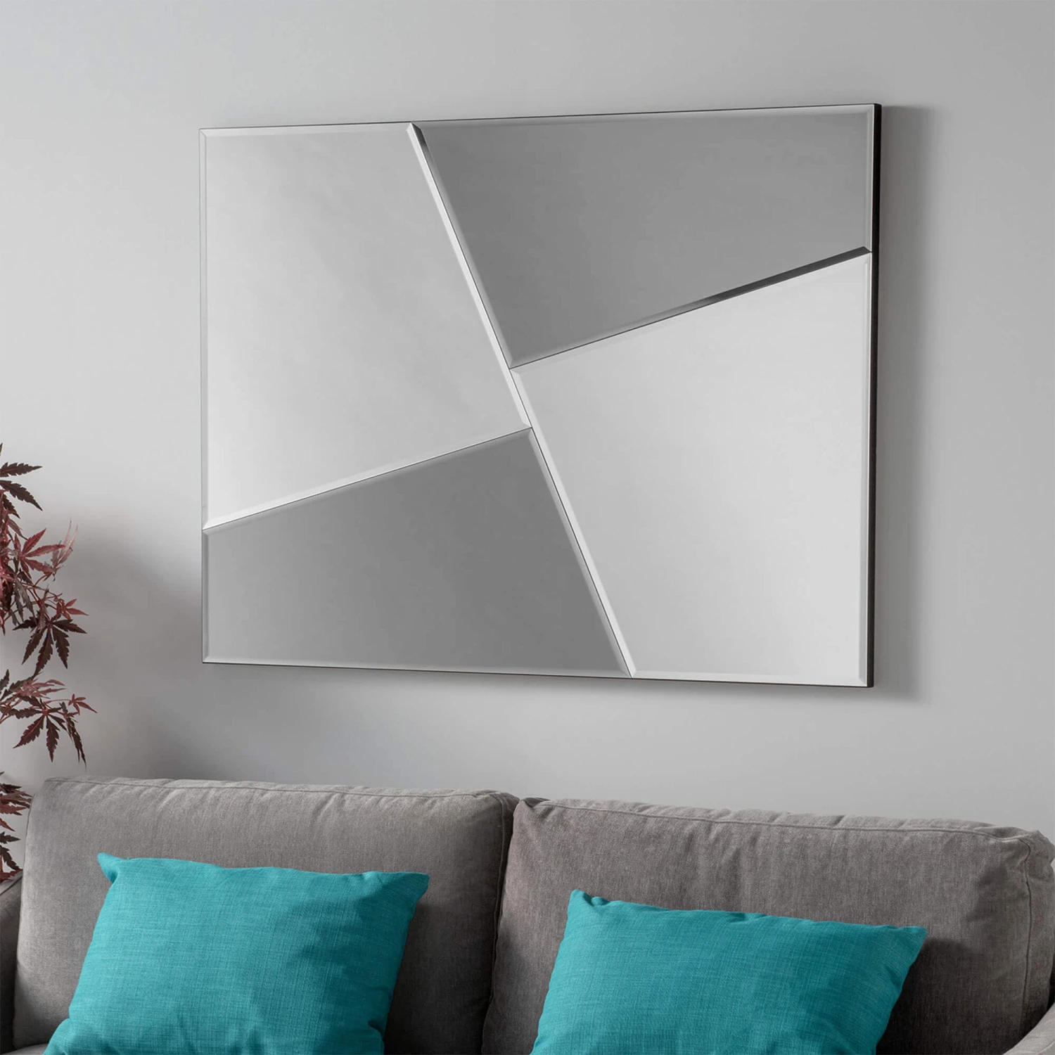 This Lavinia Grey And Silver Mirror will provide a modern, stylish look to your room. The mirror features grey and silver abstract shapes whist also acting as a mirror to provide your room with both style and practicality.