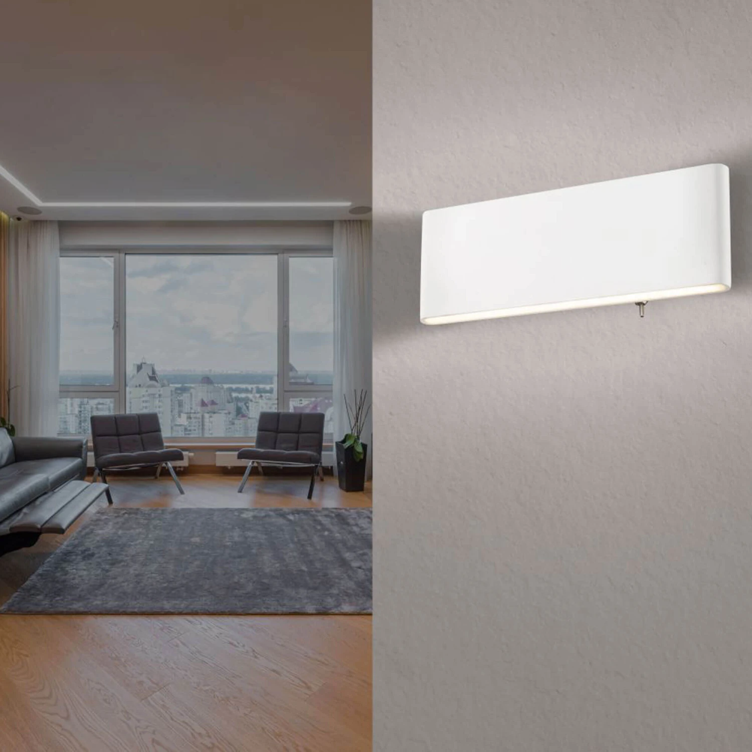 The LED Slim Switched Mini White Wall Light is a sleek and stylish lighting solution that will add a modern touch to any room. It features a sleek white finish that will complement any décor, and the LED technology provides bright and energy-efficient illumination, by radiating upwards and downwards, you conjure up a pleasant and cosy atmosphere to your living room, hallway, or bedroom.
