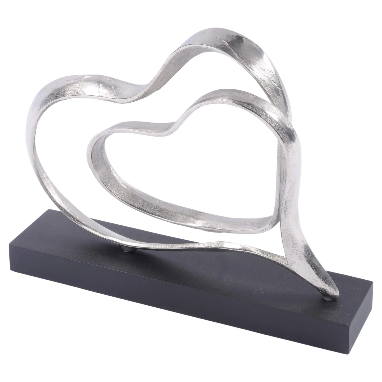 This romantic sculpture from Libra features two abstract entwined hearts, crafted from aluminium in a silver finish. The hearts are positioned upon a matte black base, creating an elegant contrast for a contemporary & eye catching finish. The Libra Abstract Double Heart Aluminium Sculpture would make the perfect gift for a loved one, or an ideal wedding or anniversary gift.