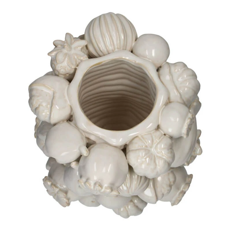 A sculptural ivory coloured vase that is inspired by the abundant beauty of nature. The soft ivory vase has a glazed finish creating a subtle sheen and a glossy look, making it a wonderful decorative piece.