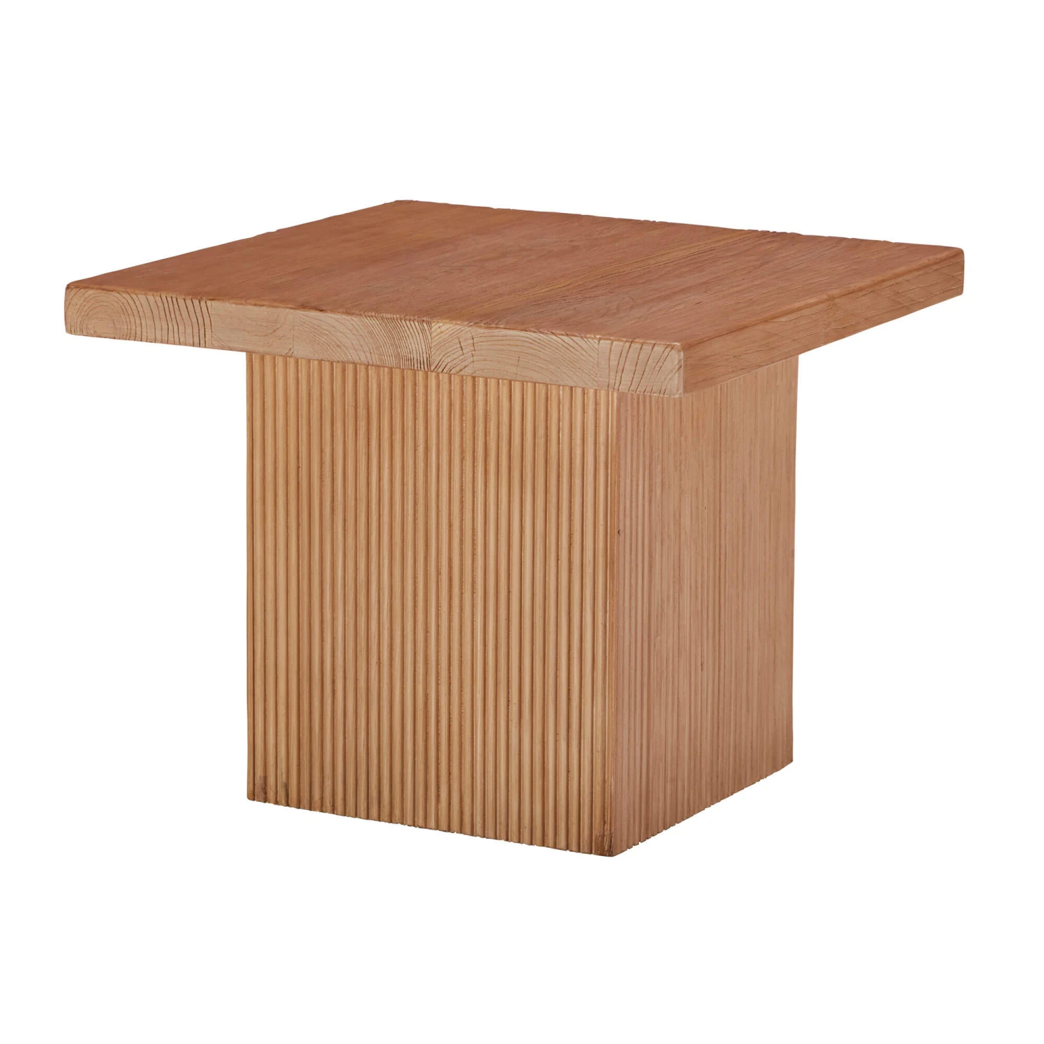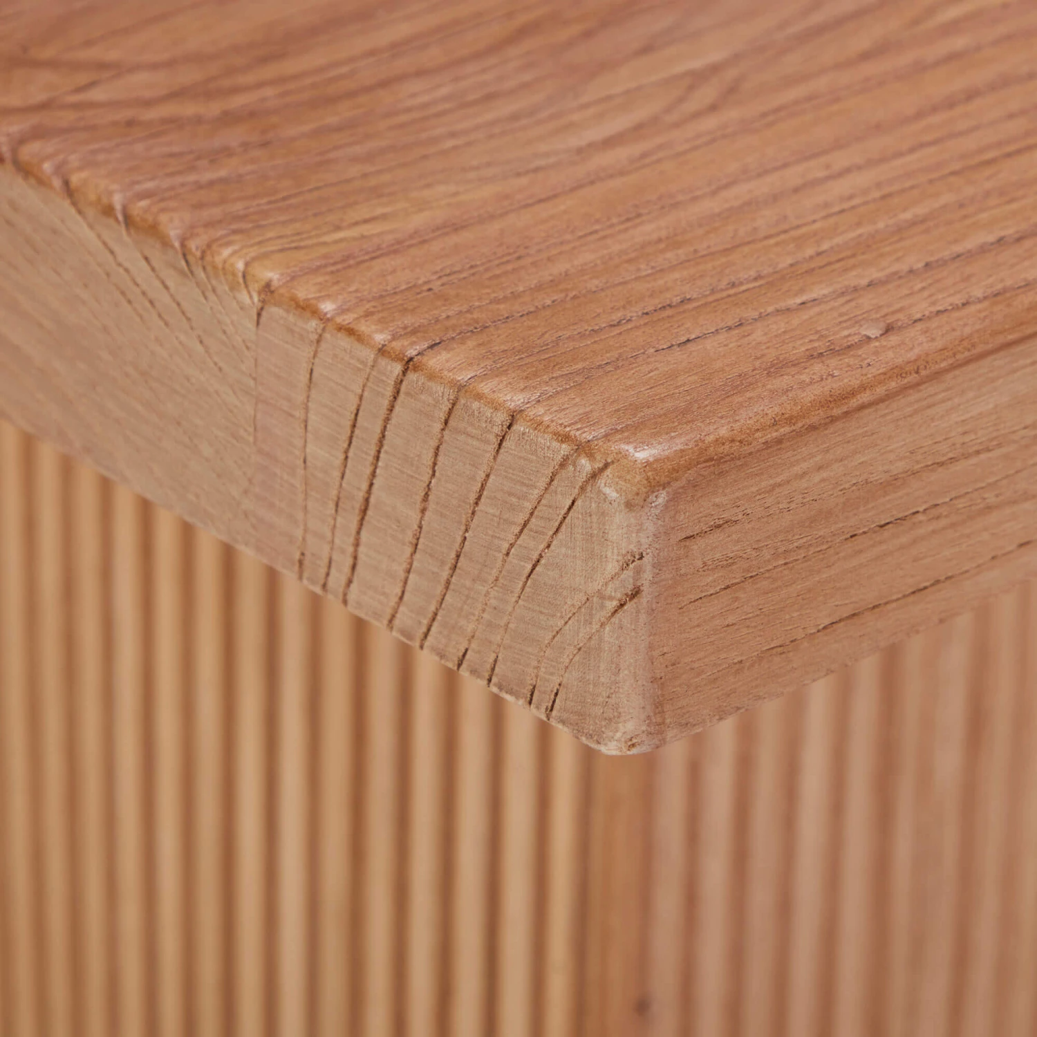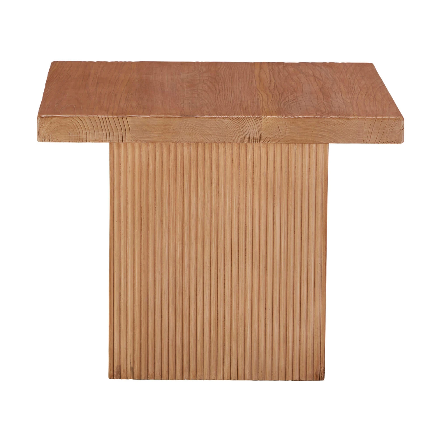 Linea Rectangular Elm Wood Side Table features refined design, where organic form meets architectural precision. The soft edges and soft ribbed textured elm wood surface reveals the material’s inherent character and charm.