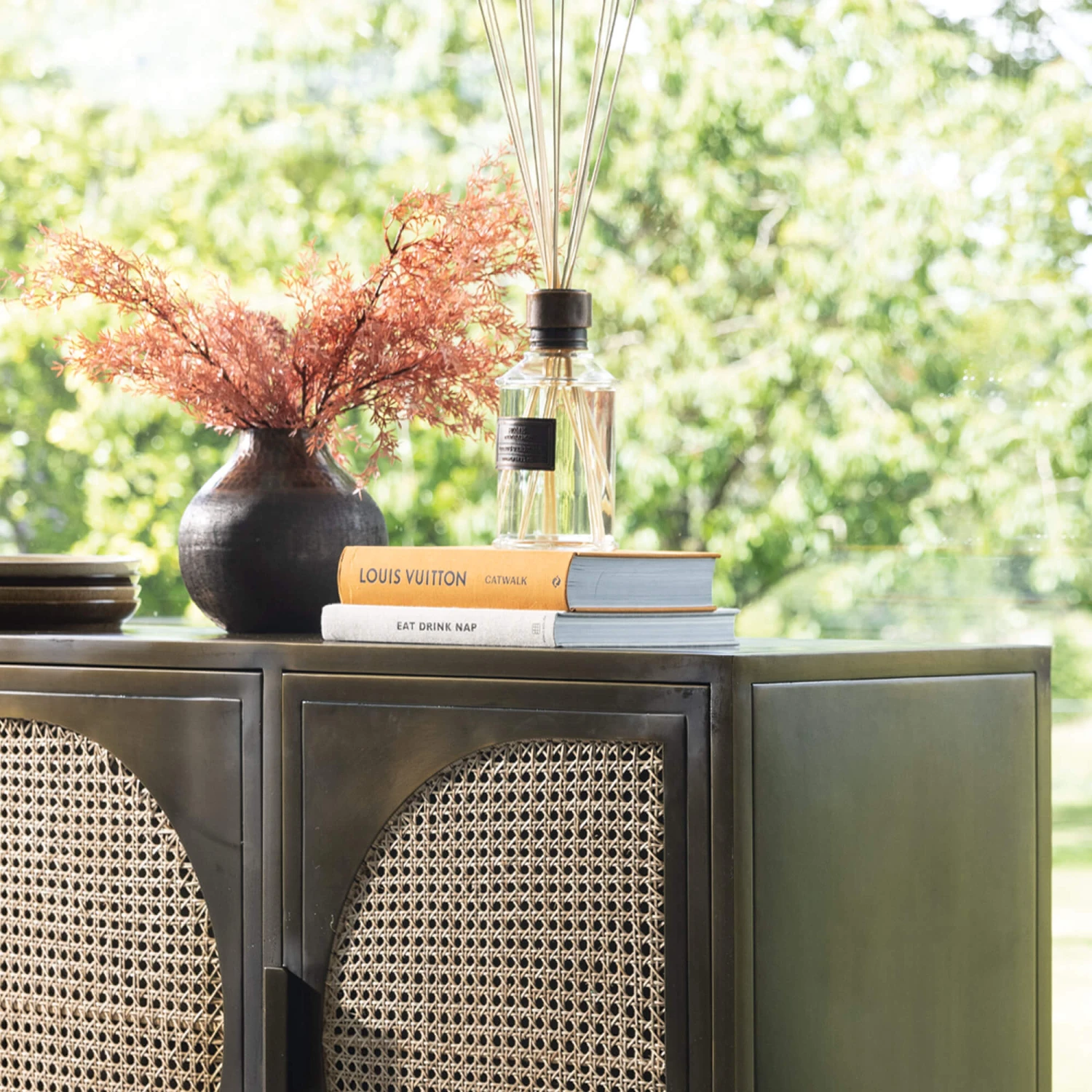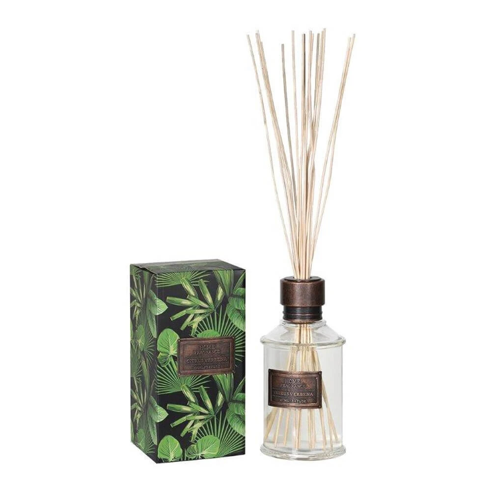 Create a tropical resort vibe in your home with the Loft Large Citrus Verbena 1000ml Reed Diffuser. Presented in a beautiful palm leaf print box with a vintage style label in an aged, antique copper finish, this diffuser is perfect for gifting. With floral notes of verbena and top notes of citrus, the scent of this diffuser is truly refreshing and is sure to help to create a soothing, tranquil atmosphere in any home with its relaxing fragrance.