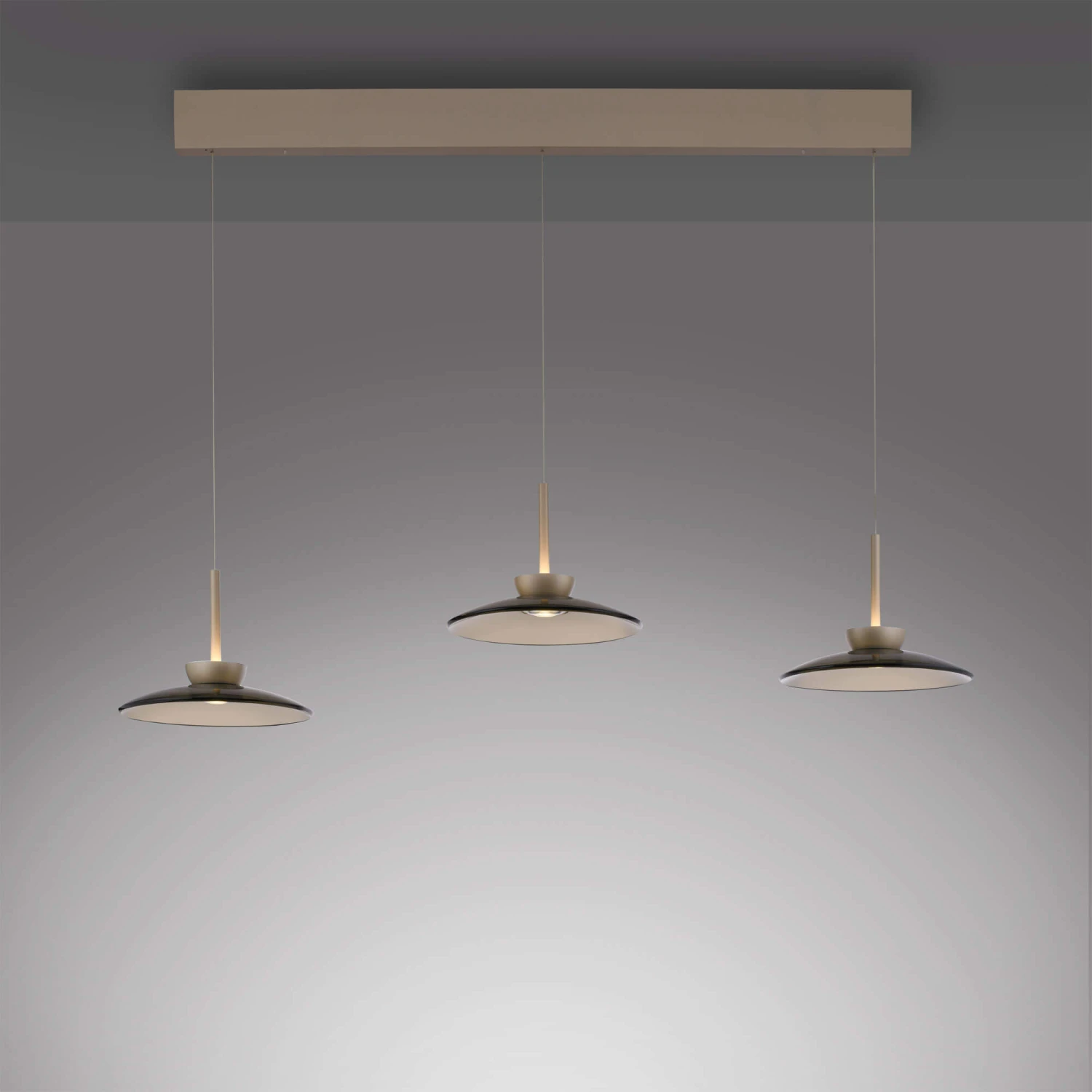 The Luna Bronze & Dark Amber Glass 3 Light Bar Pendant introduces timeless elegance with modern technology. Illuminated by three LED light sources emitting a warm white light, this sophisticated bar pendant features a rectangular bronze metal base combined with three round dark amber glass shades, providing a cosy and inviting ambience. Dimmable via a separate Tronic dimmer, the brightness can be adjusted precisely according to your desired mood while the Comfort-Lift function enables the height of each light to be easily adjusted or positioned individually thanks to the built-in mechanism in the canopy, offering full flexibility for every situation. Adjustable in height from 80cm to 200cm, this stylish bar pendant is the perfect mix of design and quality, making it ideal placed in any contemporary home, whether it be in your living room or above the dining table.