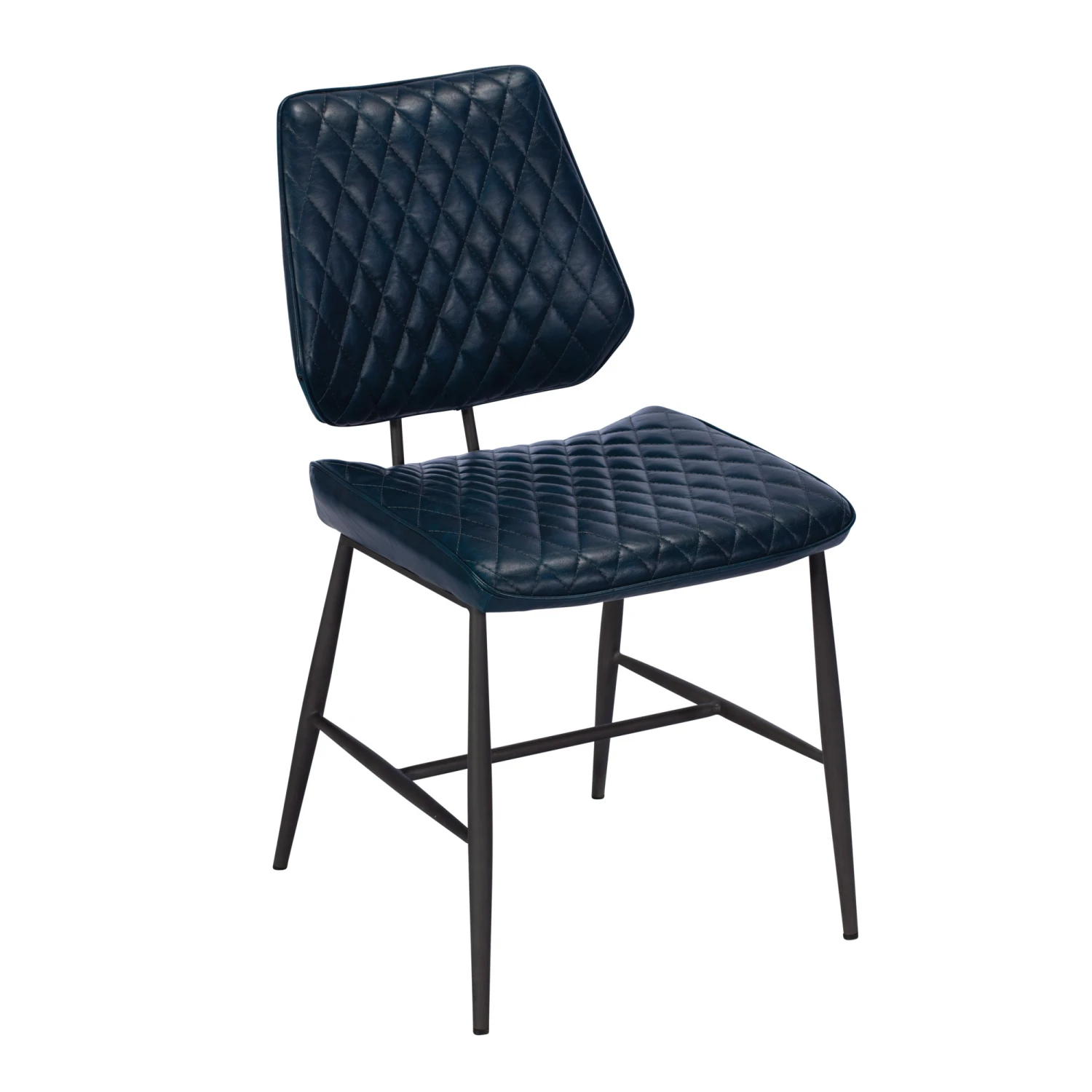 Uniting comfort with industrial chic design, the Kiara Dark Blue Faux Leather Dining Chair is as inviting as it is trendy. Featuring a grey steel frame, a curved padded backrest and upholstered in a beautiful soft faux leather with quilt-effect, diamond stitch detailing, the Kiara is striking in appearance with its urban infused design, yet offers an optimum level of comfort. Accompanied with its bold, dark blue colour, the Kiara Dining Chair is sure to make a stylish statement in any setting with its unapologetically modern aesthetic.