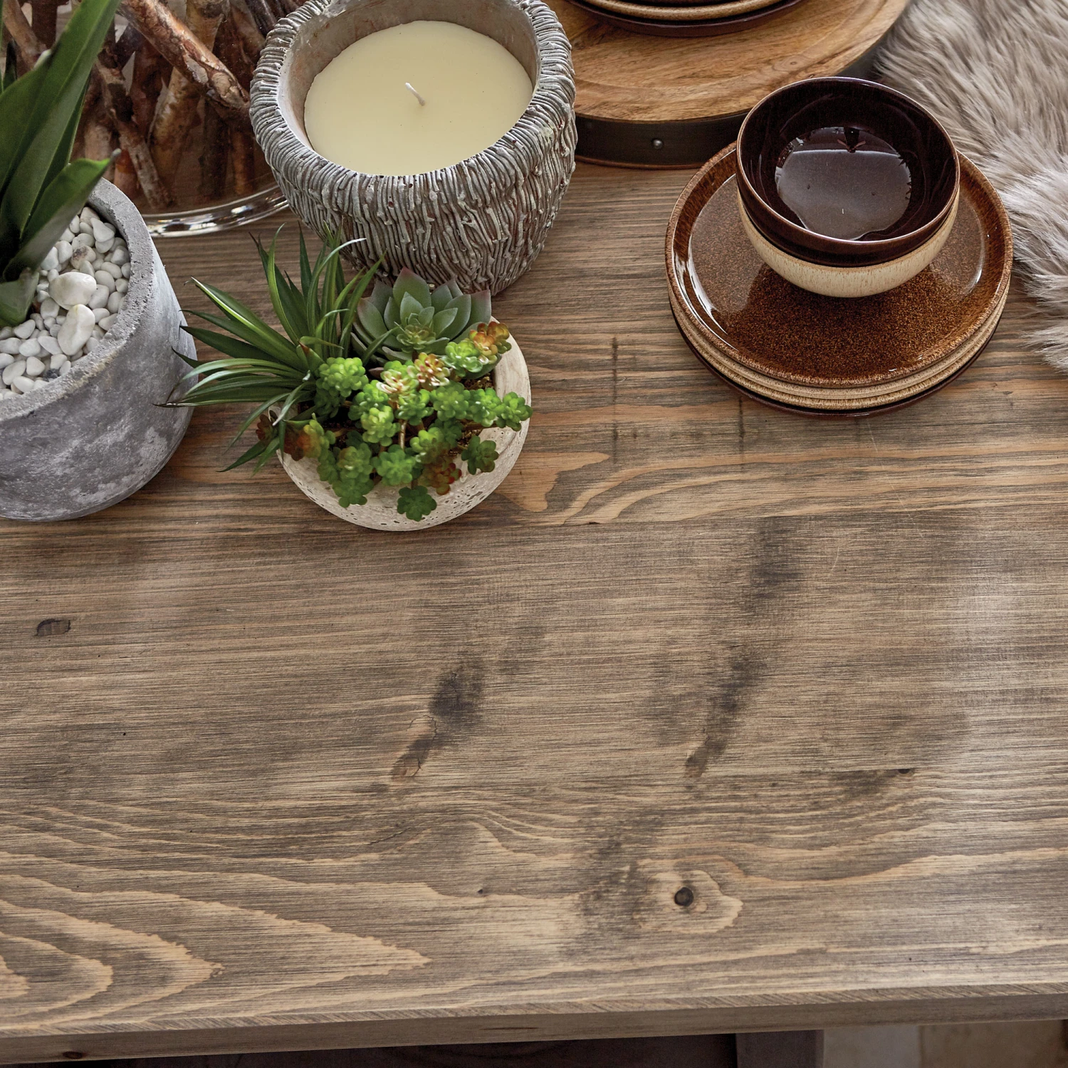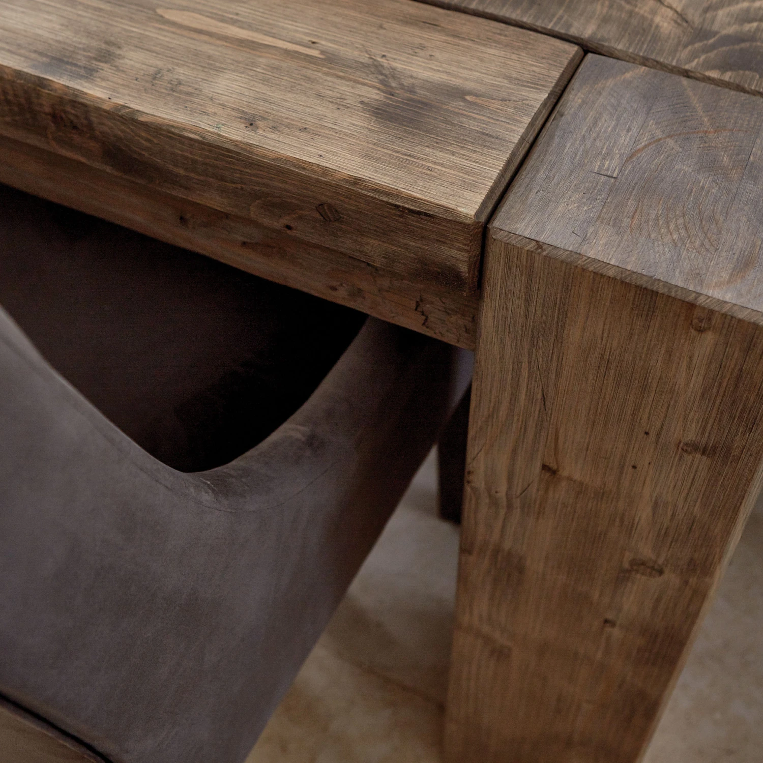 Made from reclaimed wood and conifer timbers with four chunky legs and a natural waxed finish.