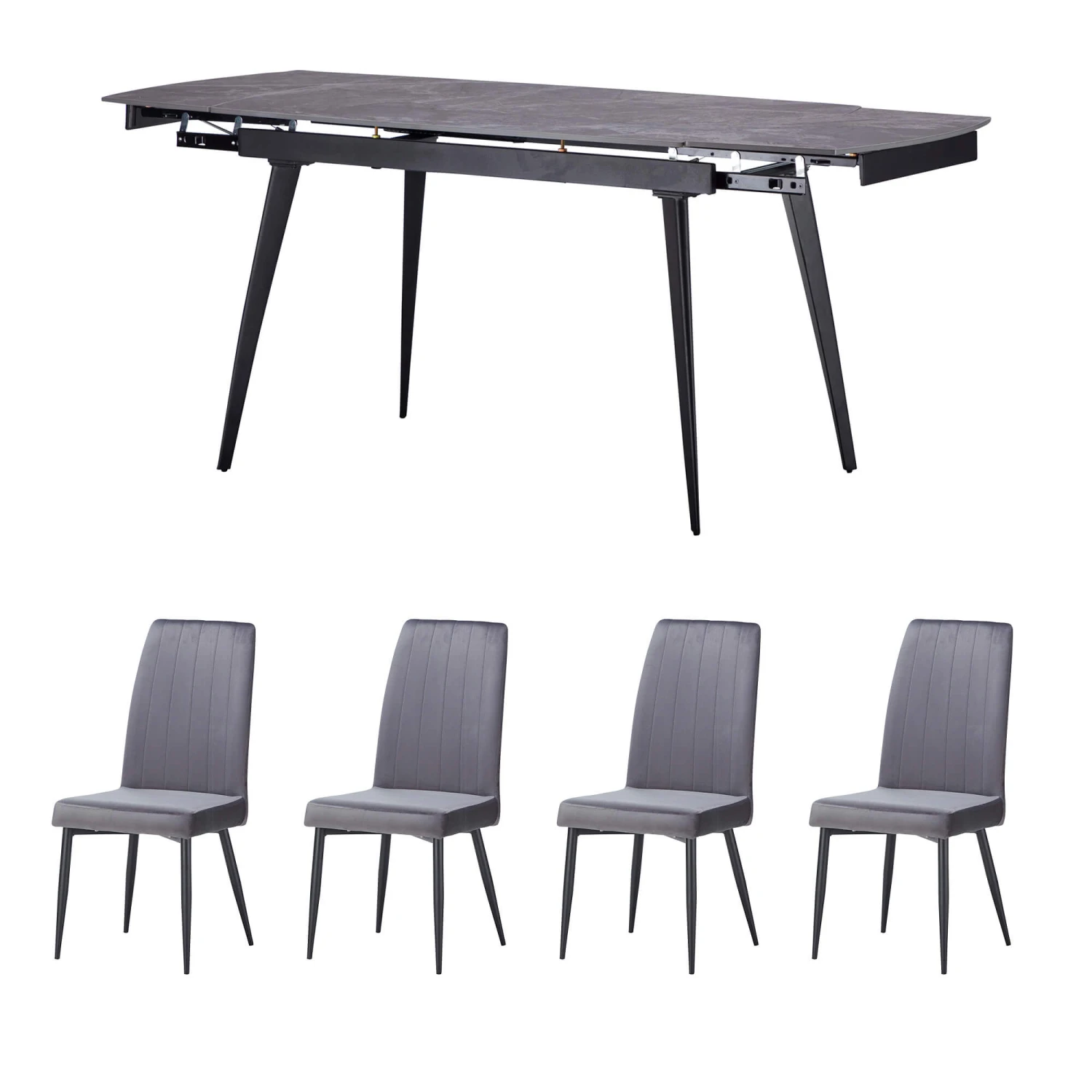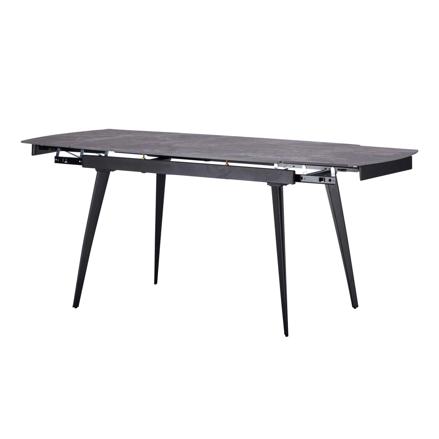 The Monteverdi dining table is a sleek and stylish piece that will elevate any dining space. Its smooth, dark grey sintered stone top with its soft marble effect is both beautiful and durable, while the tapered black legs add a touch of sophistication. The table’s extending mechanism allows you to adjust the size to 180cm allowing you to accommodate any number of guests, making it perfect for both everyday meals and special occasions.