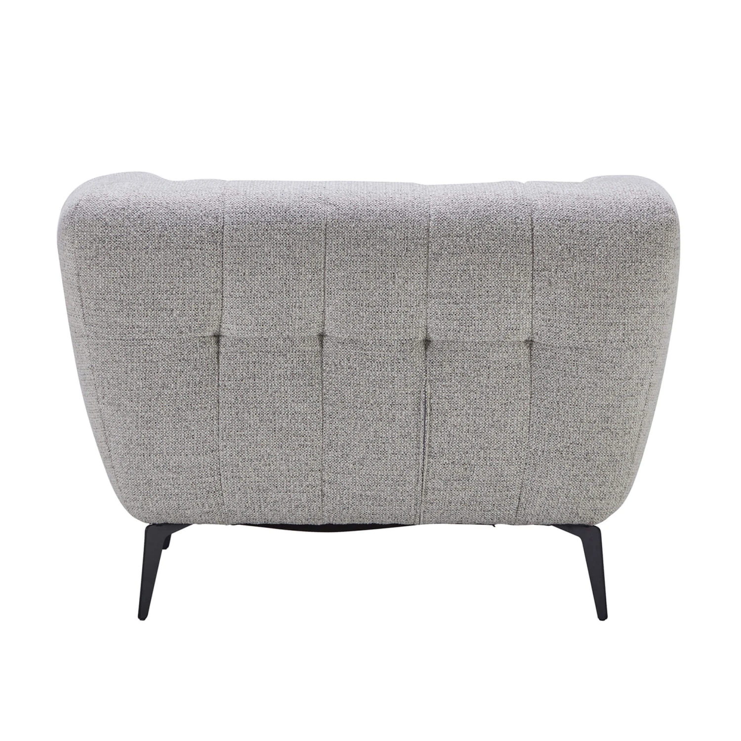 Upholstered in a luxurious light grey fabric, the Montreal has a pin-tuck tufting and deep value detailing, adding depth and creating an attractive grid-like pattern. With slender matt black metal legs, it boasts a modern boutique aesthetic, which is sure to elevate any interior with its air of style and sophistication.