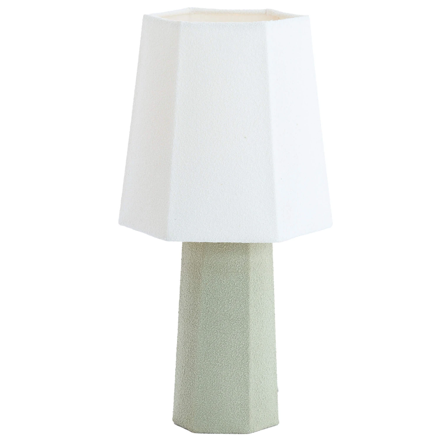 This Musabo hexagon shaped table lamp is presented in a Japandi inspired design and features a textile composition. The base of the lamp is mint green, and the shade comes in a soft white to make up the perfect complete table lamp for your home. It is 49cm tall and it fits an E27 bulb fitting (bulb not included).