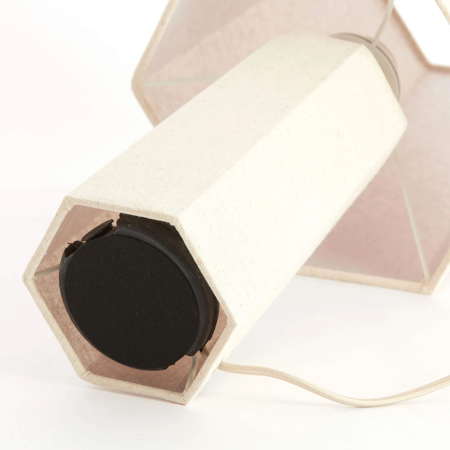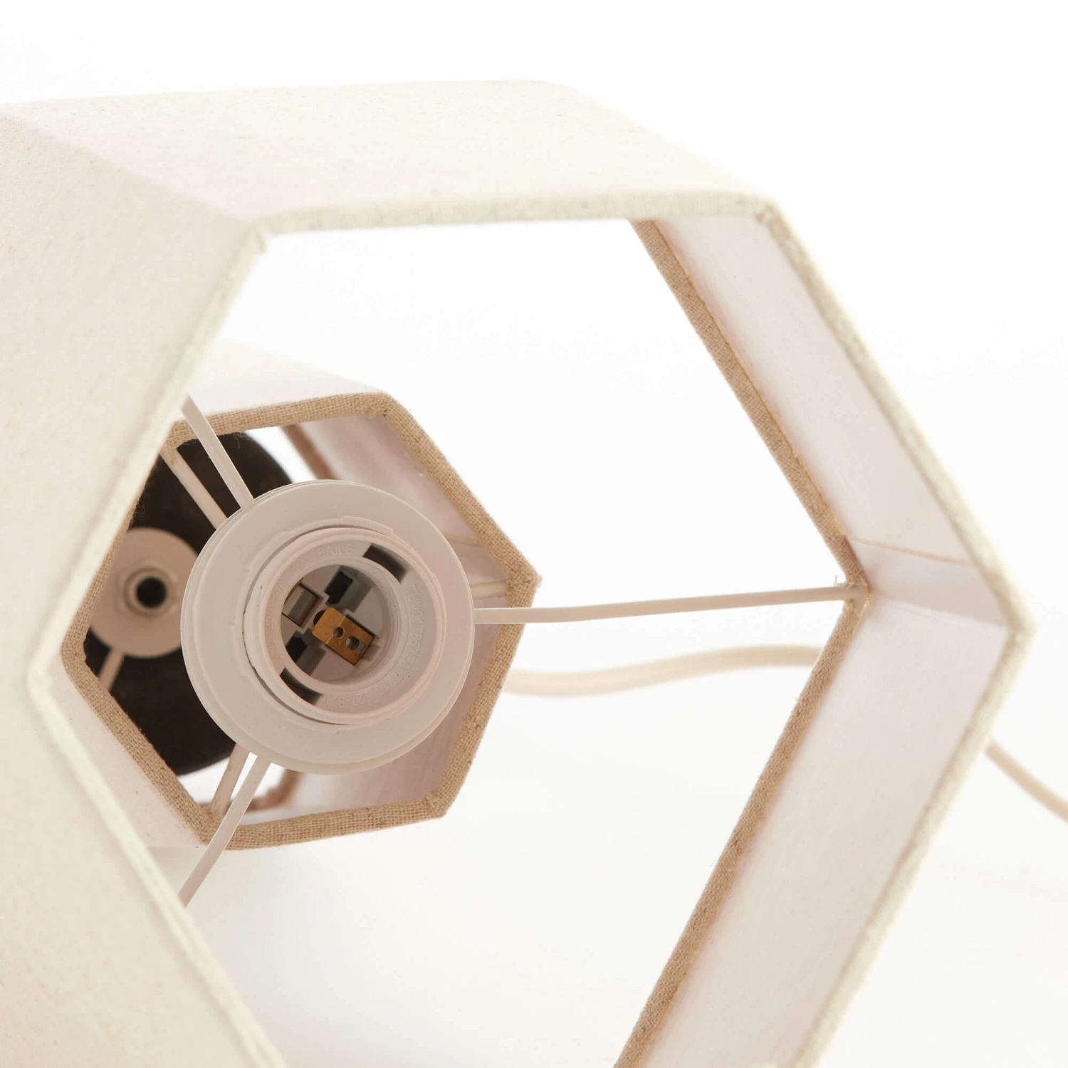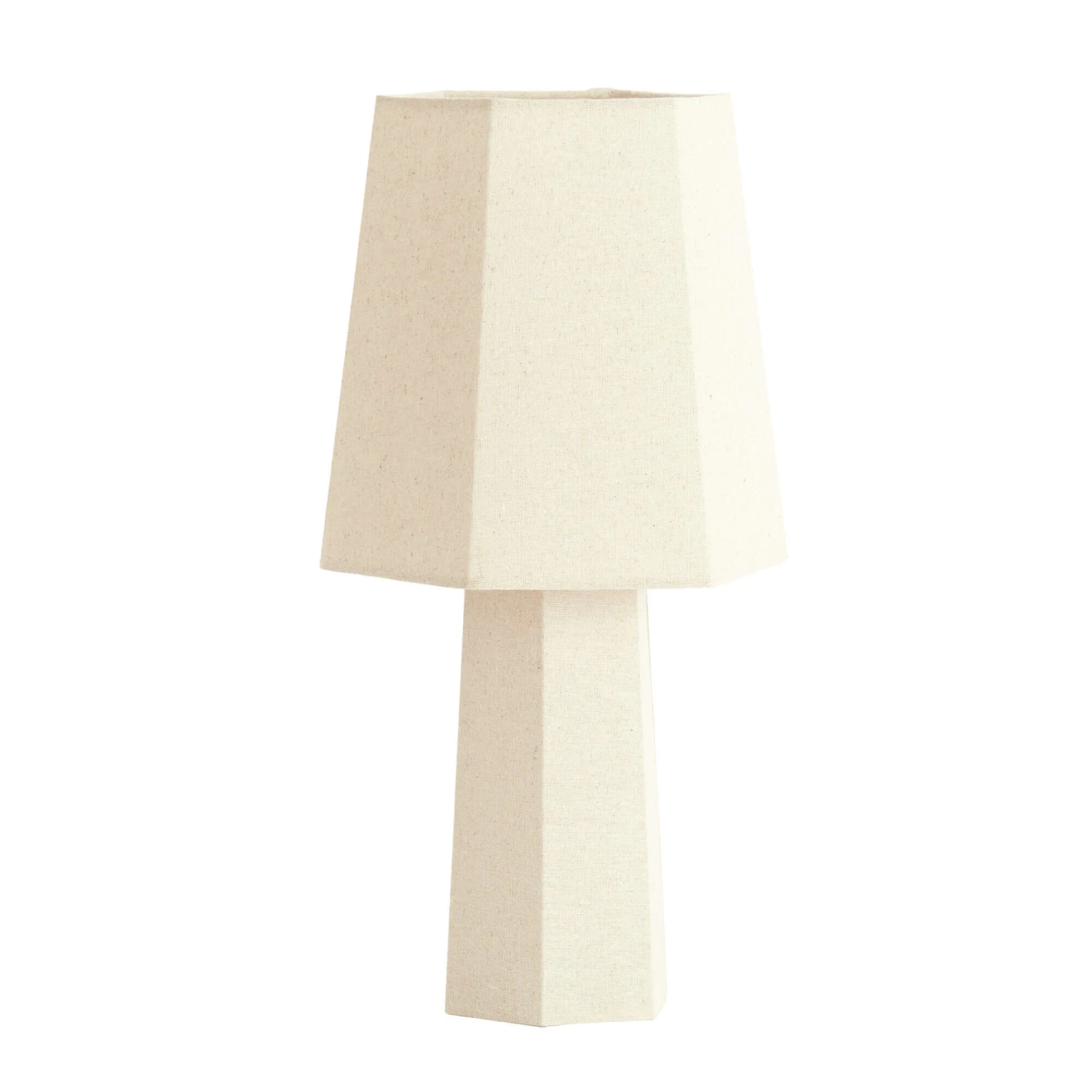 This Musabo hexagon shaped table lamp is presented in a Japandi inspired design and features a textile composition. The base of the lamp and shade comes in a clean natural tone to make up the perfect complete table lamp for your home. It is 49cm tall and it fits an E27 bulb fitting (bulb not included).
