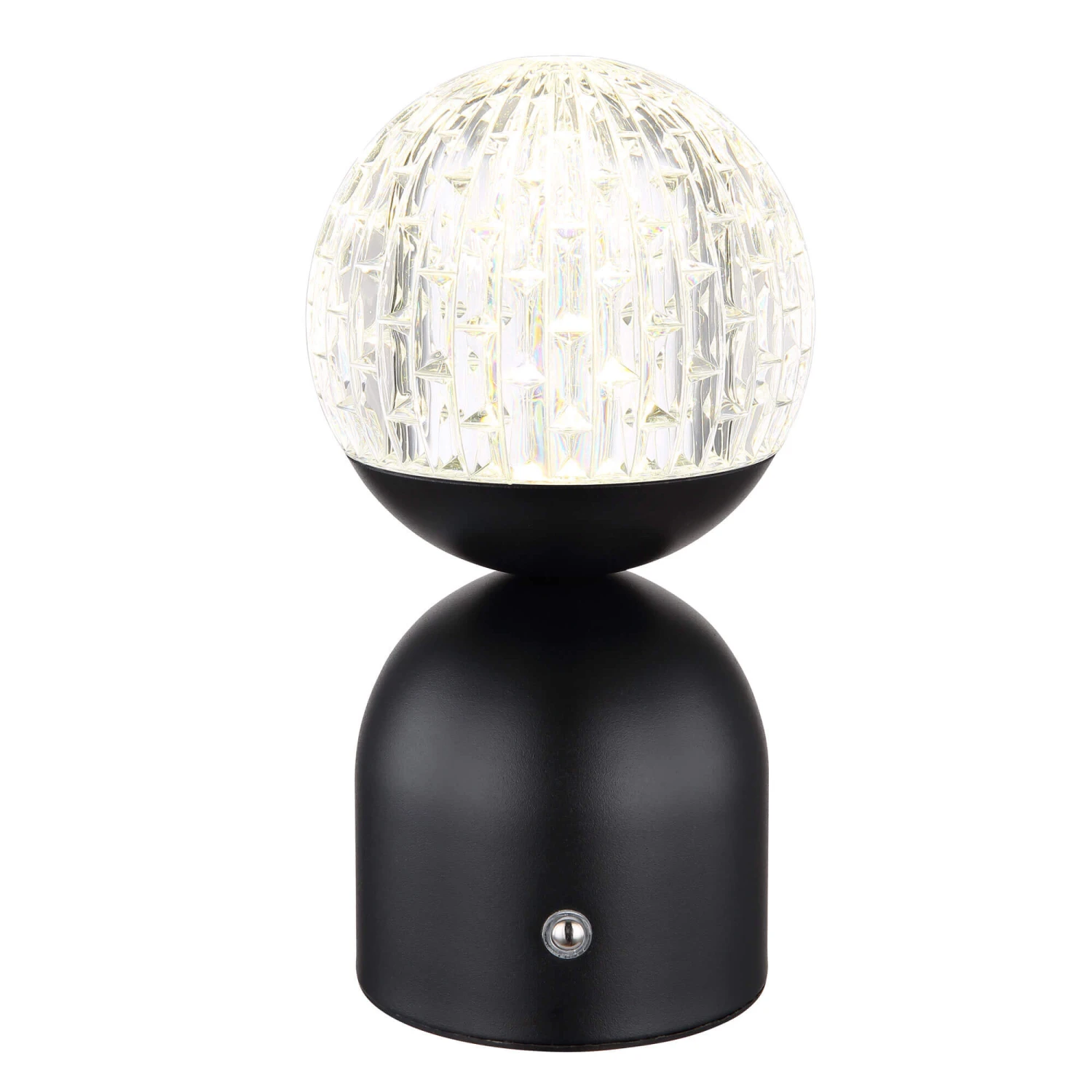 Immerse your room in a beautifully soft and unique glow of light with this Mystic Black Sparkle Table Lamp. Illuminated by an integrated LED bulb, this minimalist table lamp features a clear acrylic crystal effect shade with a matt black metal base, creating a dazzling and fascinating play of light when illuminated with a beam angle of 120°. Operated by a practical integrated touch on/off function, it has a infinitely variable touch dimmer allowing to adjust the brightness and colour of the lamp between three temperatures to your desired setting, and is supplied with a handy USB charging cable for the charging of the built-in battery capacity of 1200mAh, able to be charged in 4 hours and giving you full flexibility of where to place the lamp without the inconvenience of relying on a power outlet. Available in two colours; black and white, this stylish and unique table lamp is perfect for adding a touch of modern elegance to any room.