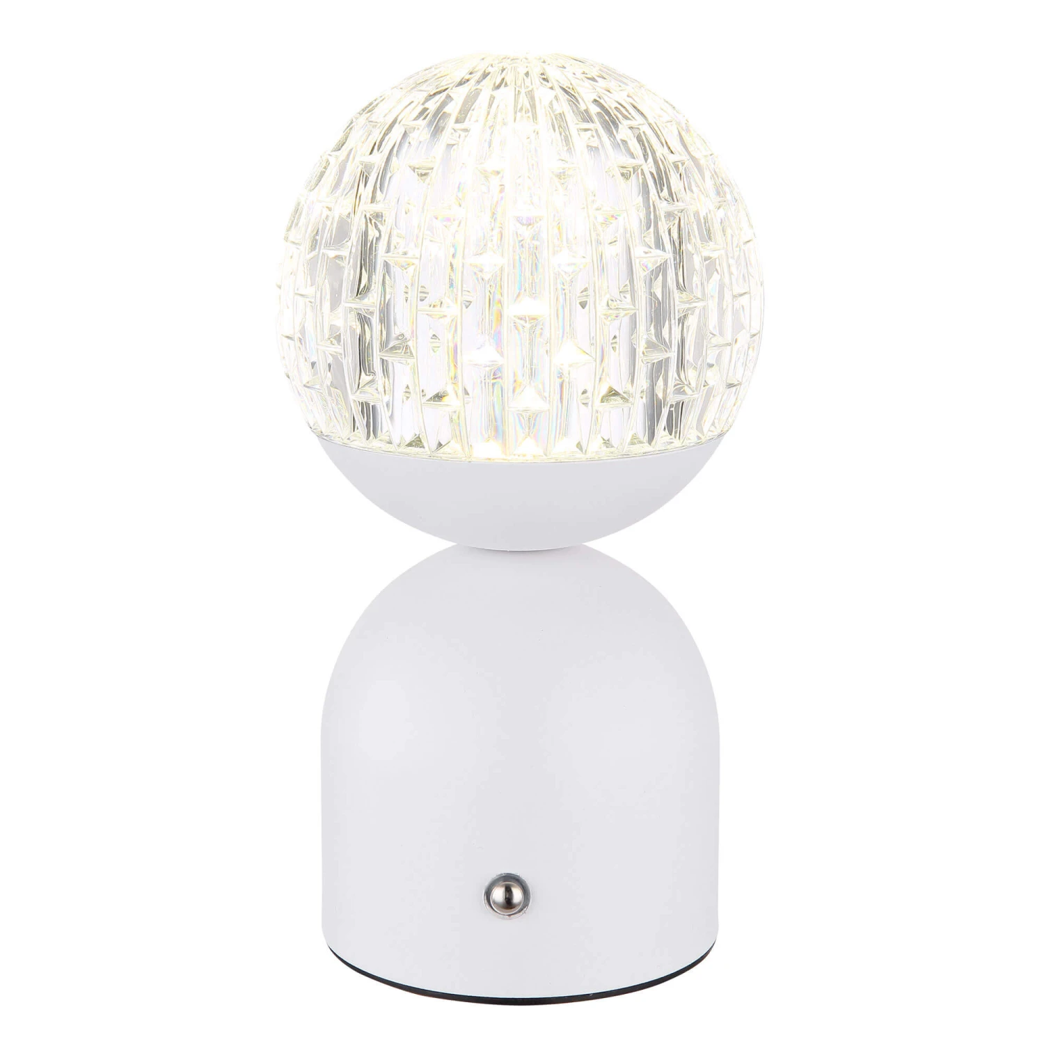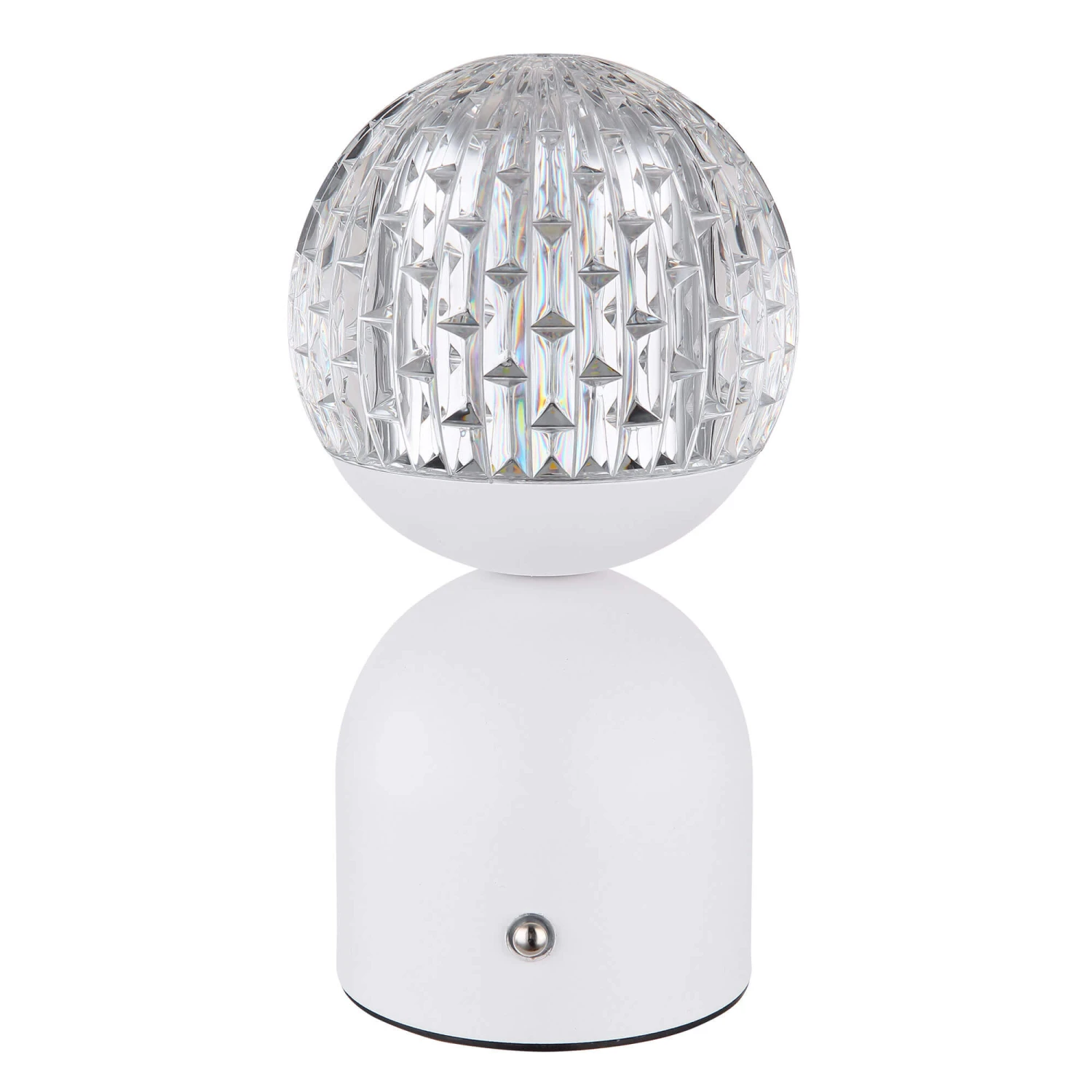 Immerse your room in a beautifully soft and unique glow of light with this Mystic White Sparkle Table Lamp. Illuminated by an integrated LED bulb, this minimalist table lamp features a clear acrylic crystal effect shade with a matt white metal base, creating a dazzling and fascinating play of light when illuminated with a beam angle of 120°. Operated by a practical integrated touch on/off function, it has a infinitely variable touch dimmer allowing to adjust the brightness and colour of the lamp between three temperatures to your desired setting, and is supplied with a handy USB charging cable for the charging of the built-in battery capacity of 1200mAh, able to be charged in 4 hours and giving you full flexibility of where to place the lamp without the inconvenience of relying on a power outlet. Available in two colours; black and white, this stylish and unique table lamp is perfect for adding a touch of modern elegance to any room.