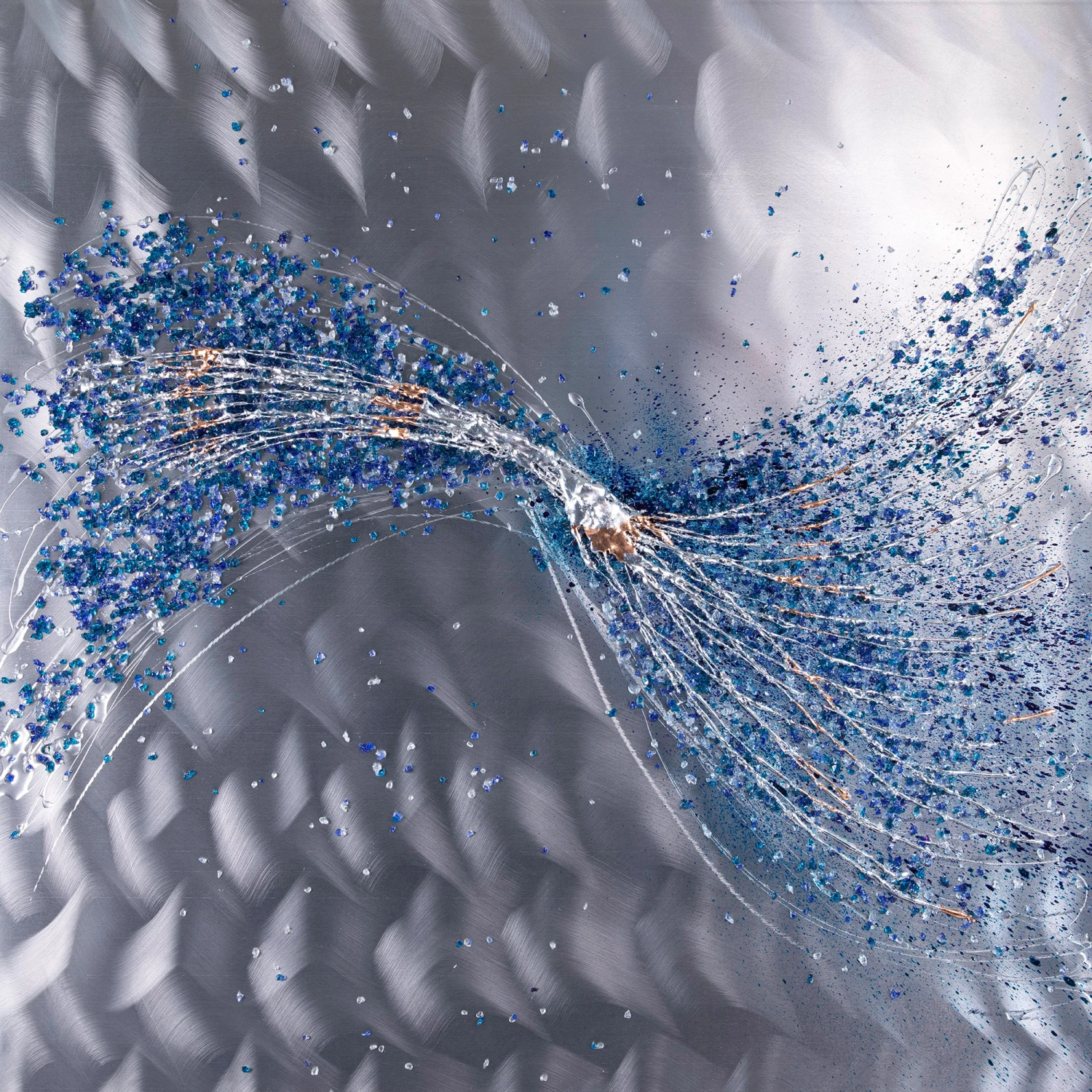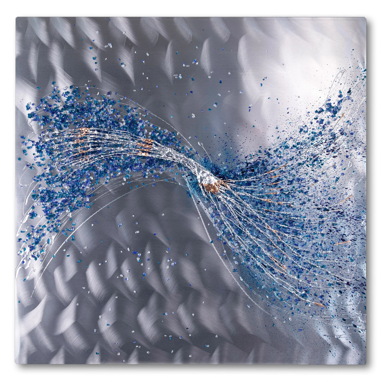 This Alchemy piece is ideal for those who want to add a pop of colour to their homes, inspired by waves, this artwork symbolises the ever changing waves in the ocean. The back board of this piece helps reflect light and makes a room feel brighter and more open and the 3D pieces adds depth to the wall art, giving it more character.