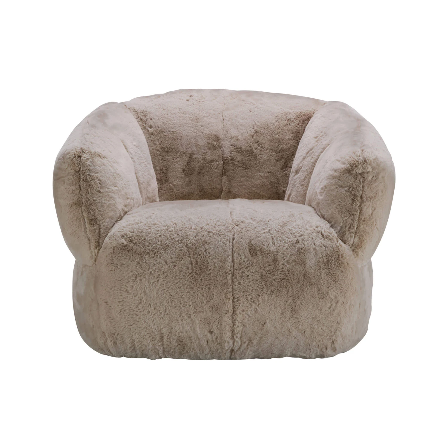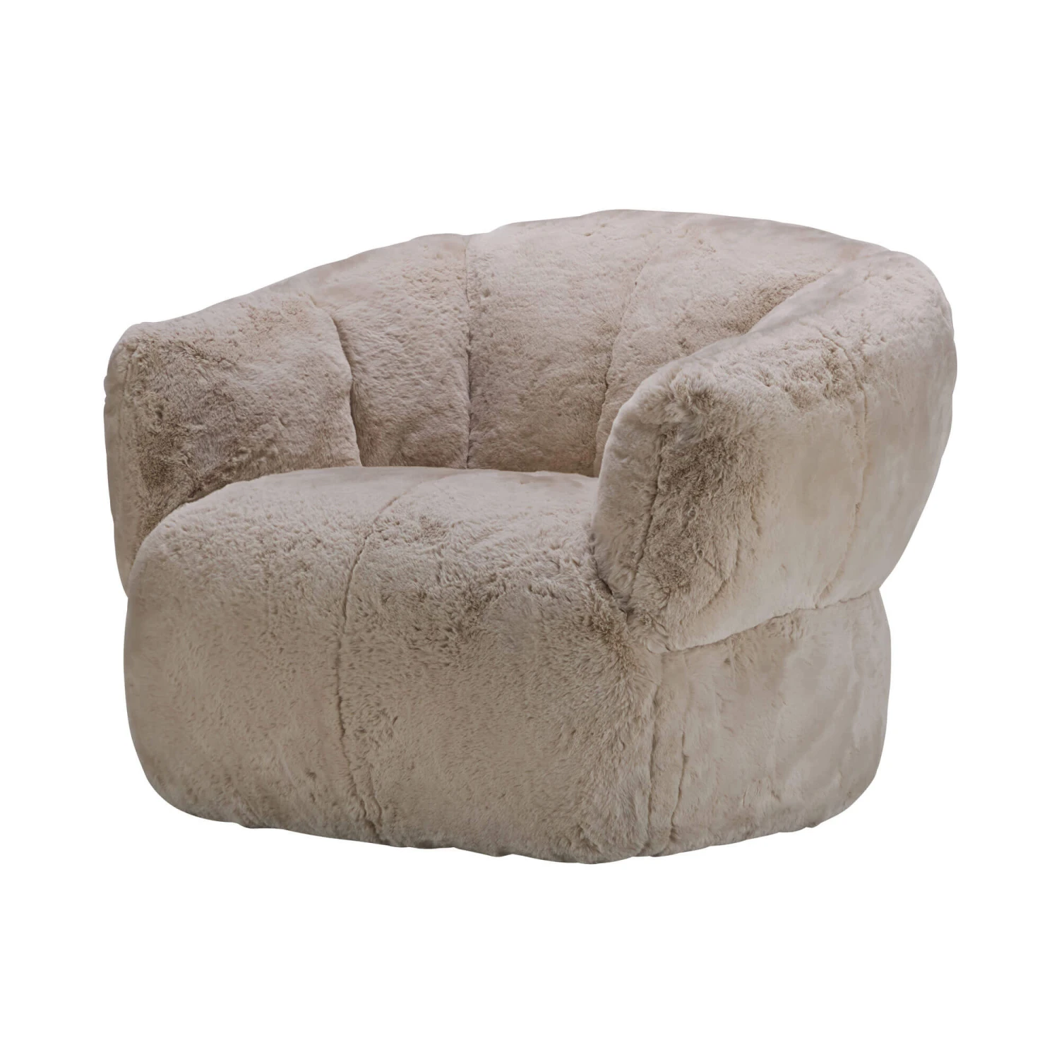 The Niva Beige Faux Fur Armchair offers a blend of playful charm and cosy comfort. Upholstered in a soft beige faux fur, the Niva features a curved silhouette, generously padded cushioning, embracing curved arms, a deep seat and a black metal swivel base, creating a snug, cocoon-like feel.