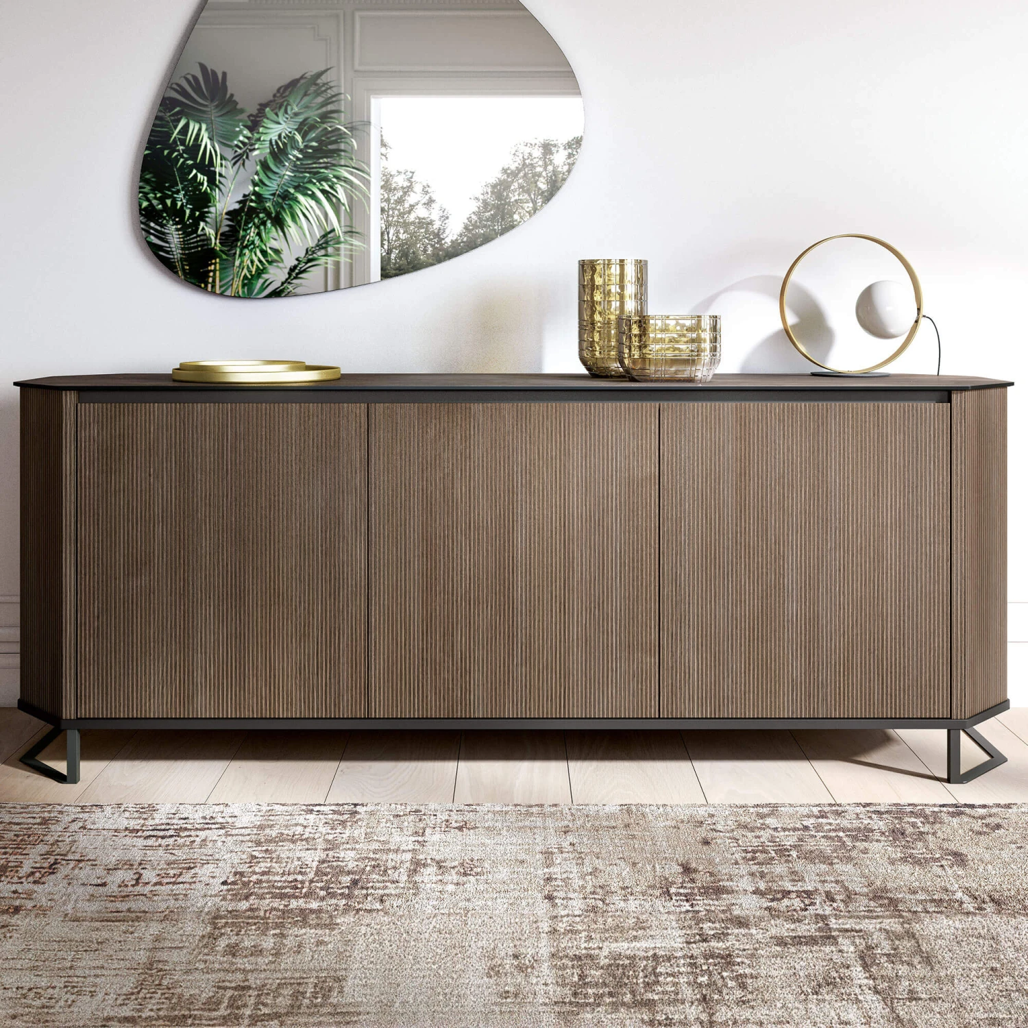 Oratino 3 Door Ribbed Wood Sideboard
