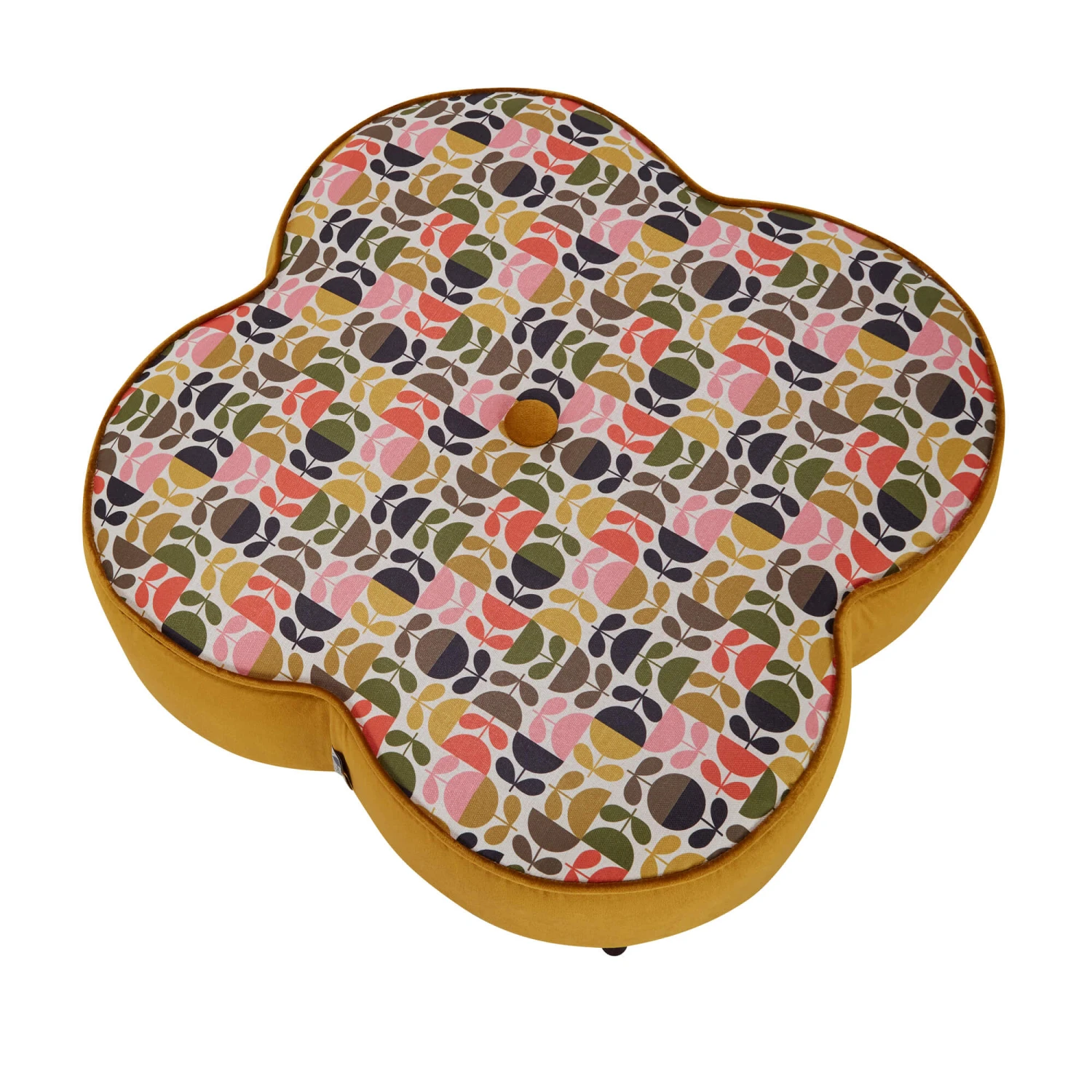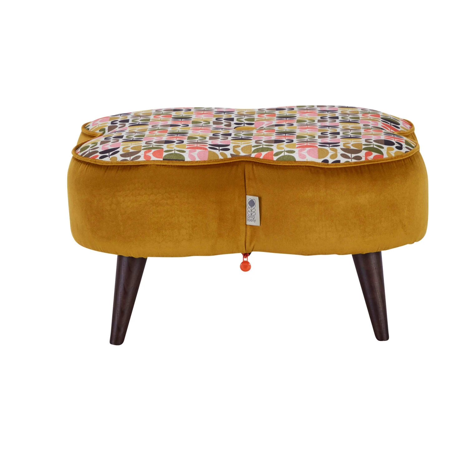 A neatly piped trim enhances the eye-catching, shapely form and reflects the impeccable quality and attentive detail in the craftsmanship that has gone behind the making of this piece. The hand-tied, oversized centre value is another thoughtful embellishment which adds to the character of this stool, whilst the plain, indigo velvet sides really help to draw the eye in on the main event of this piece; the iconic, colourful, Orla Kiely ‘Multi Stem’ patterned top in a blend of vibrant colours inspired by spring, which really capture the joyful, rejuvenating essence of this season.