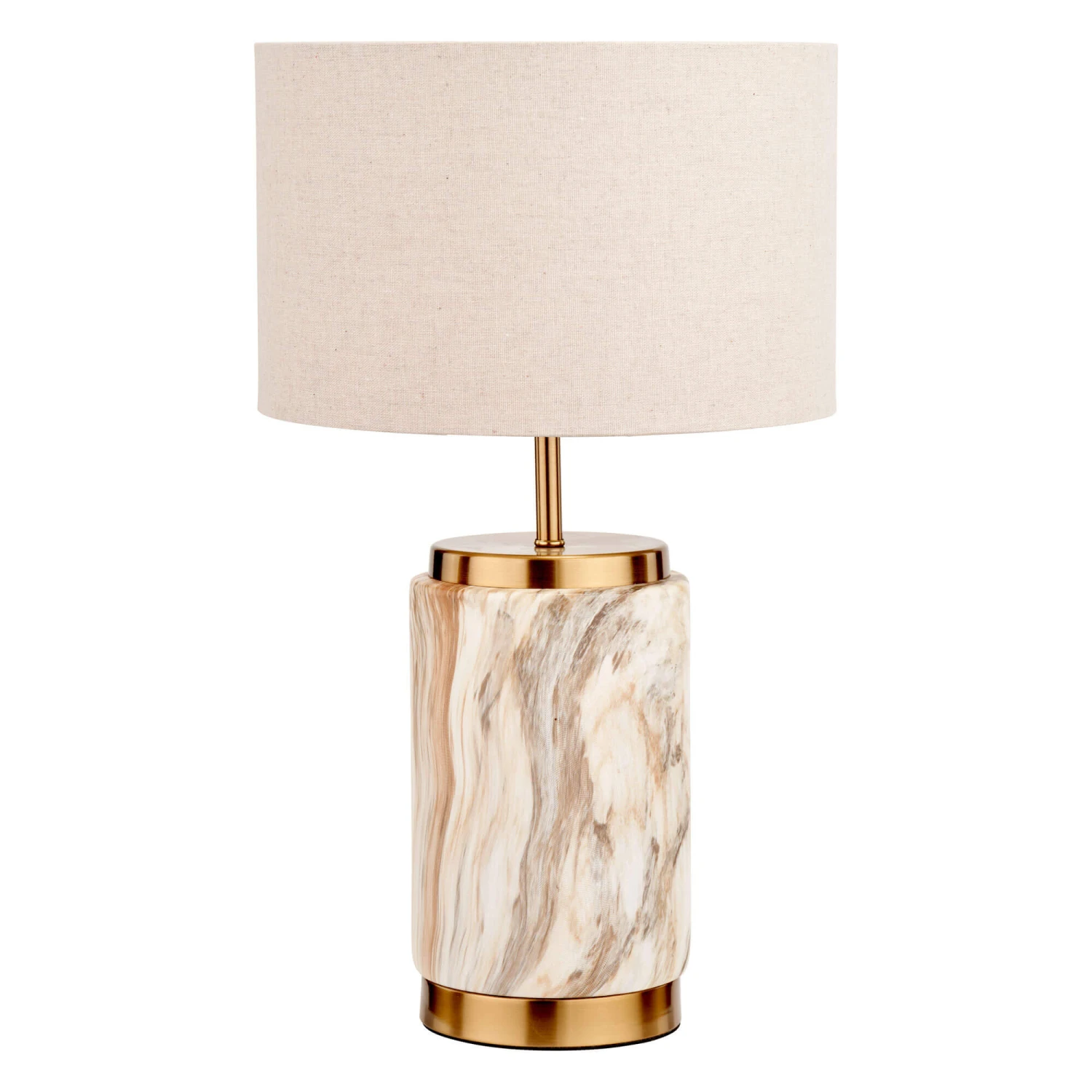 Add a luxurious and modern touch to your home with this Carrara Natural Stone Effect Ceramic Table Lamp. Illuminable by an E27 LED bulb, this sophisticated table lamp features a natural self-lined linen effect shade and a natural stone effect finish ceramic body complemented by gold metal detailing, providing a warm and inviting ambience. Available in two sizes, this stylish table lamp is perfect for adding a soft natural hue and texture to any contemporary interior, making it ideal for fitting in with most décor styles with its beautiful finish.