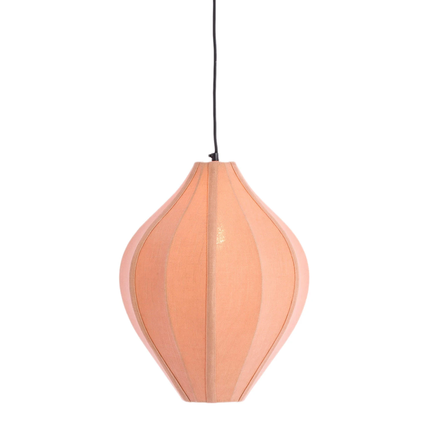 Bring warmth and a lovely pop of colour to your living space with this Pasto Light Pink 36cm Pendant Light. Illuminable by a required E27 bulb, this coral themed pendant light features a round metal base with a softly curved, elongated shaped fabric shade in a light pink finish, casting a warm and cosy ambient glow. Available in two sizes, this sophisticated pendant light offers a graceful, organic form able to effortlessly enhance any room, making it perfect hung in any contemporary interior.