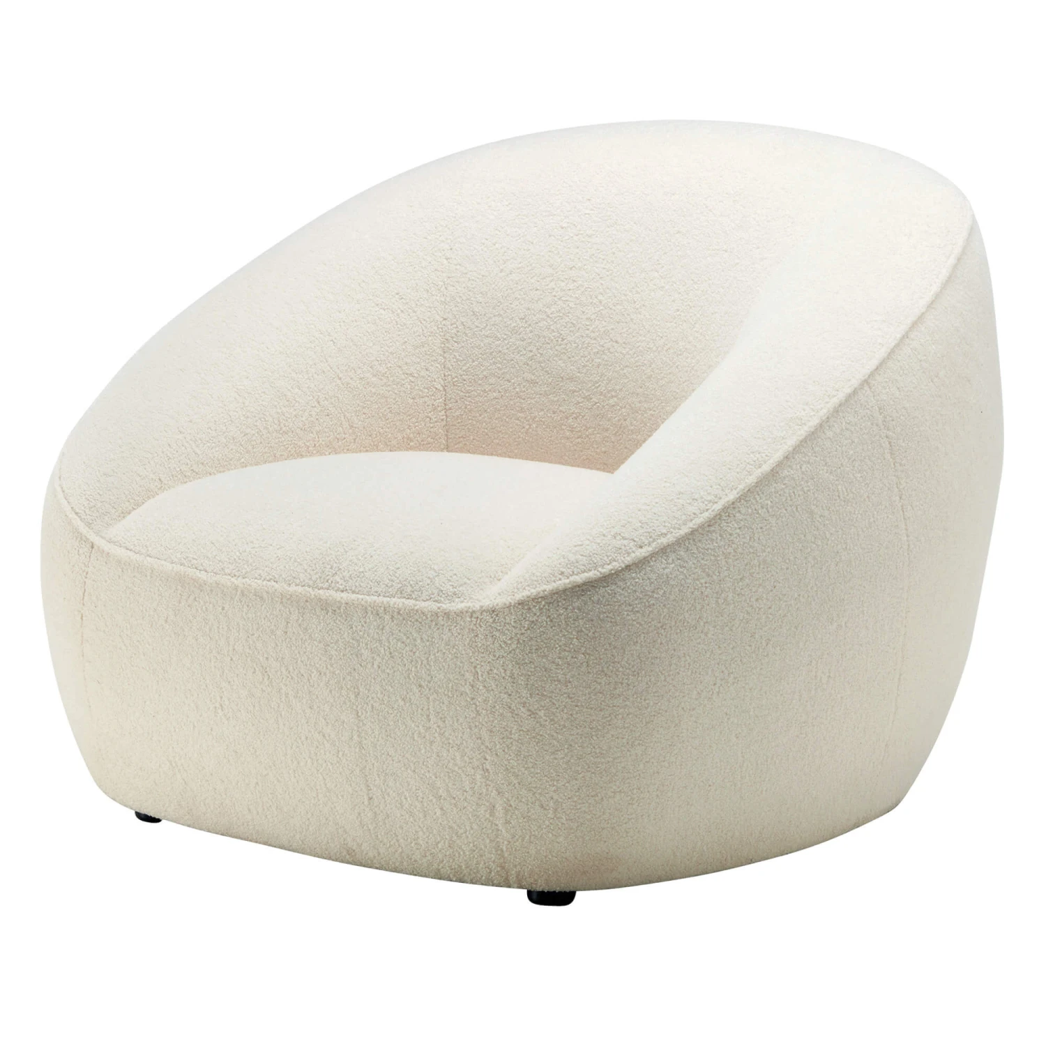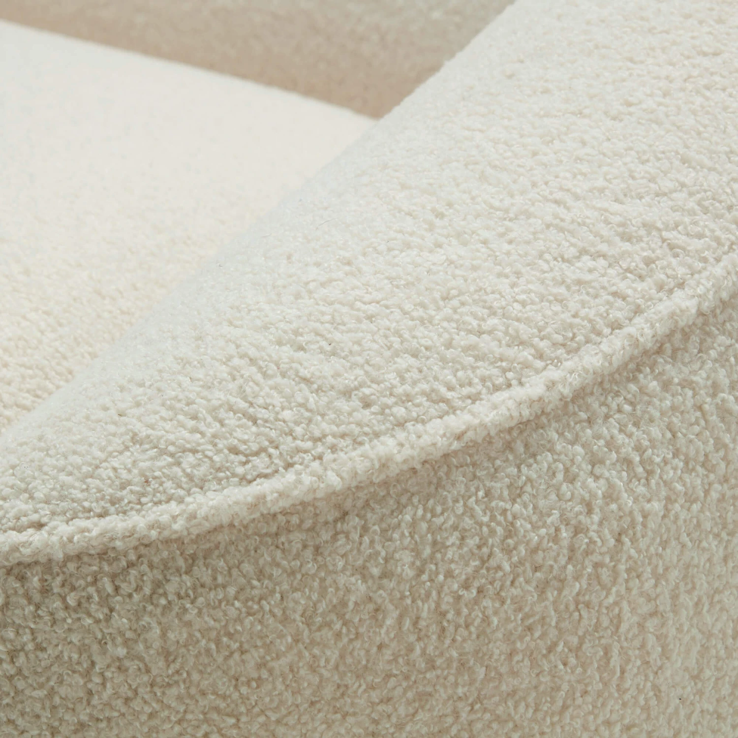 Snuggle up by the fireside with the Pebble Cream Teddy Bear Fabric Armchair. Offering an invitation to pure relaxation with its enveloping shape and cosy, sherpa-like, teddy bear fabric, the Pebble lures you in with its welcoming aura and homely features. A subtle panel effect creates a hint of visual interest and a pipe-effect trim enhances the crisp, flowing lines of the curved shape. Its curvaceous, mod-style silhouette makes a statement and ensures that this piece will stand proud in any setting; whilst a high resilient foam fills the seat interior to deliver a firm yet supportive seating experience. Accompanied with its low profile and refreshing, cream colour, the Pebble Armchair is well suited to a wide array of interiors and is sure to elevate the inviting atmosphere of any home, with its warm presence and endearing character.