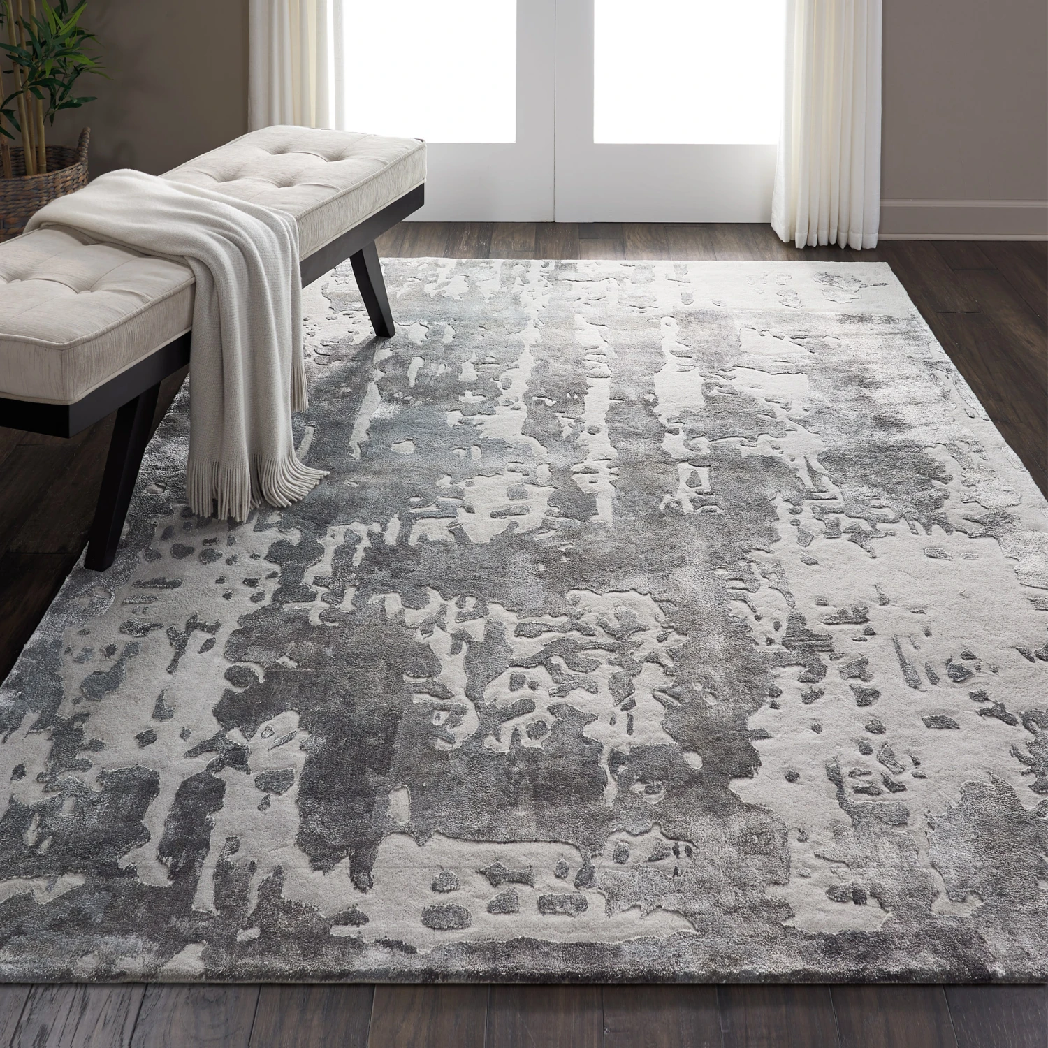 Add a sense of depth and texture to any modern home with this Prismatic Silver Grey Rug from Nourison. Featuring a cool grey colour palate entwined in silver tones; conveying a sense of movement and energy. Hand Tufted with a combination of 50% wool and 50% Viscose which adds silk-like highlights; offering a feel of a velvety touch to the rug. Perfect for adding something unique and modern to your home