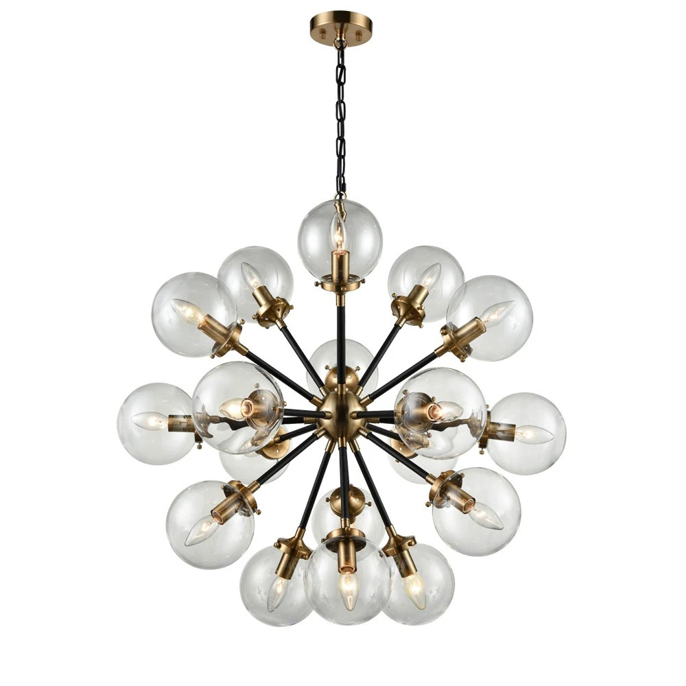This stunning pendant light features a matt black and antique gold finish. The Reaction light is a unique and stylish piece with the combination of the metal arms and glass spheres, suitable for modern or traditional interiors.