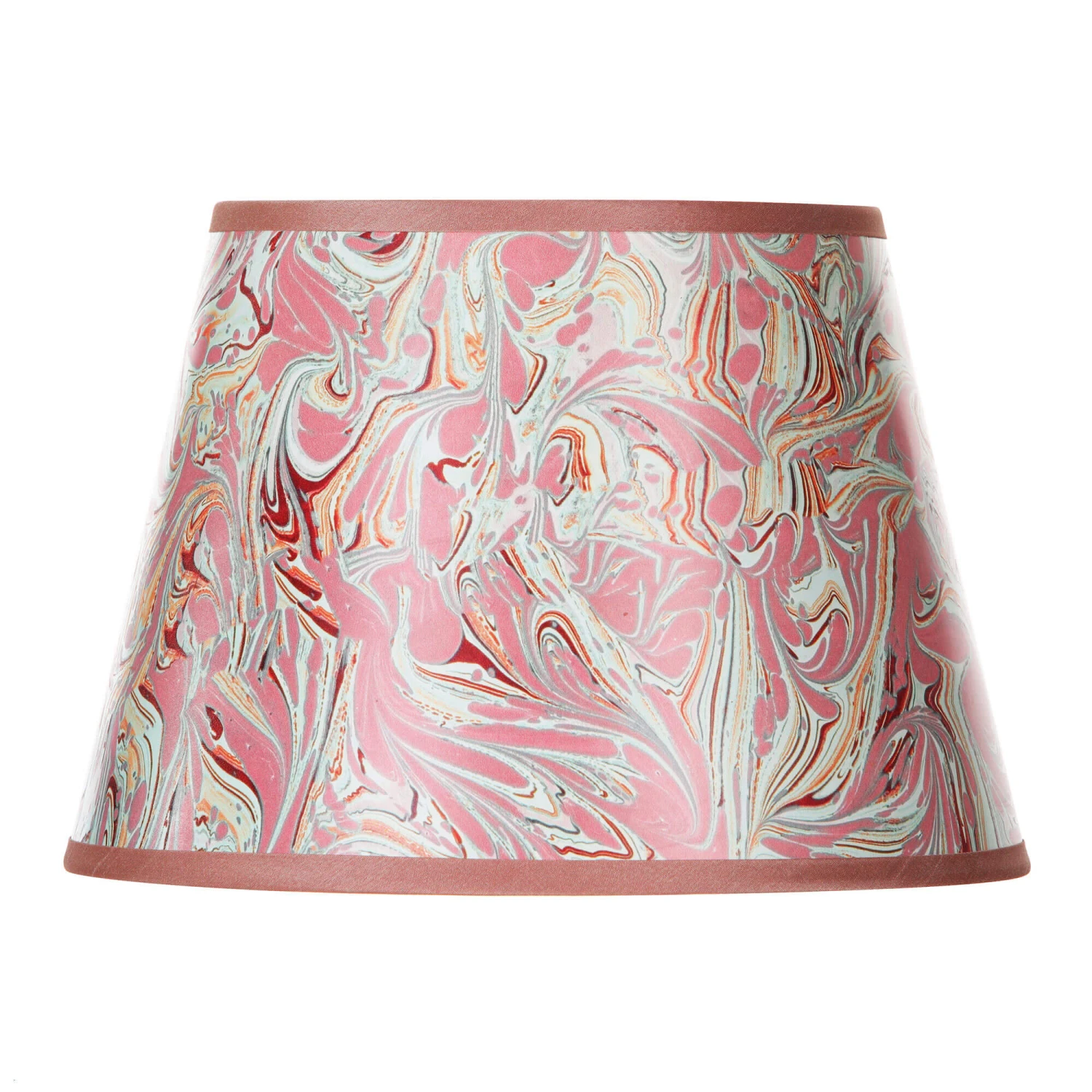 Add a bold yet elegant touch to your space with this Red Marbled 26cm Shade. Made from paper, this tapered drum shade features a beautiful marbled pattern in a striking red tone with coordinating edges and a white inner, creating a unique and captivating look. Available in various colours and sizes, this contemporary lampshade is perfect for adding vibrancy and sophistication to any interior, making it able to make a statement in any room with its visually appealing and colourful design.