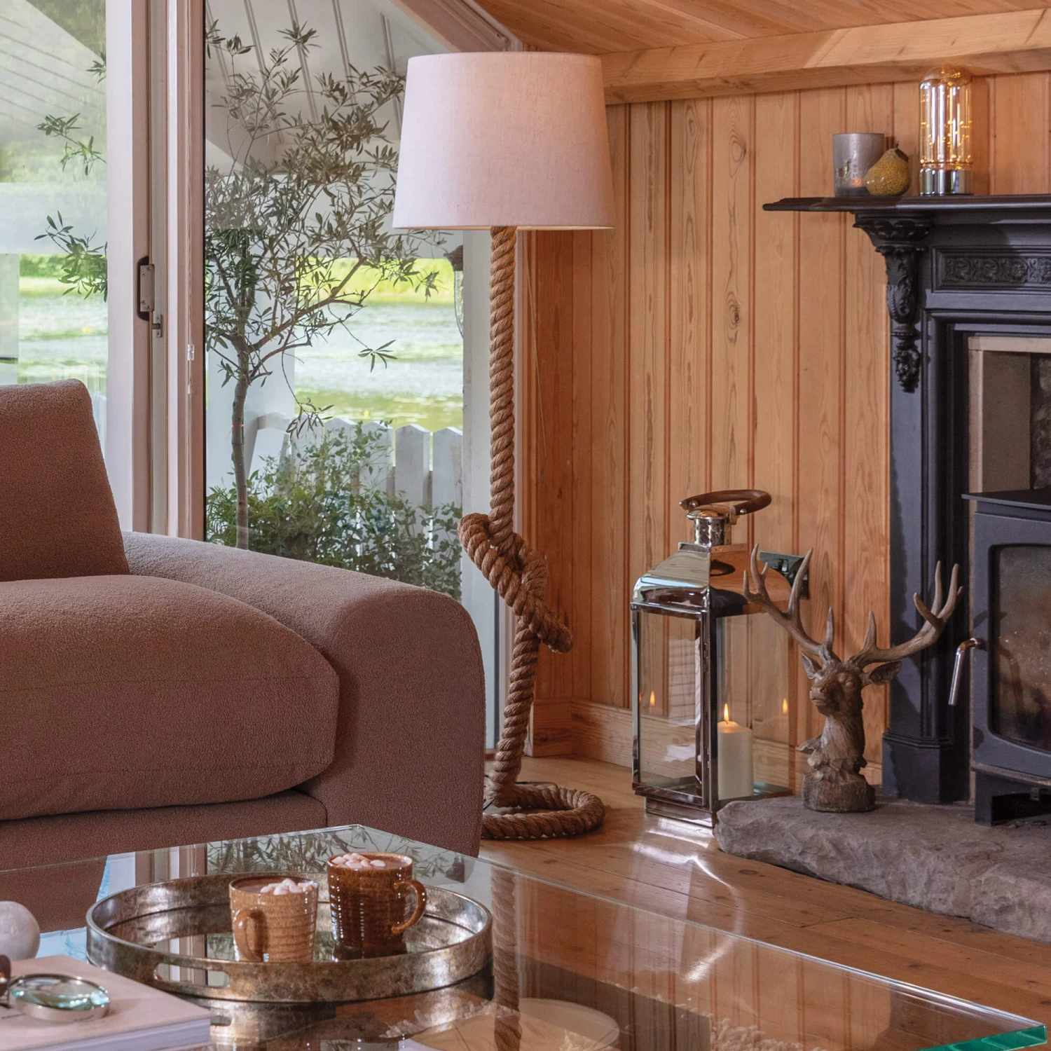 Fitting in to a naturally nautical interior perfectly this knotted rope floor lamp holds its shape perfectly without any visible metal work Topped with a natural shade which sends a warm glow through out the room. This stunning floor lamp and shade would be the perfect addition to any room in your home whether you are looking for something quirky or to suit your decor this floor lamp is sure to please.