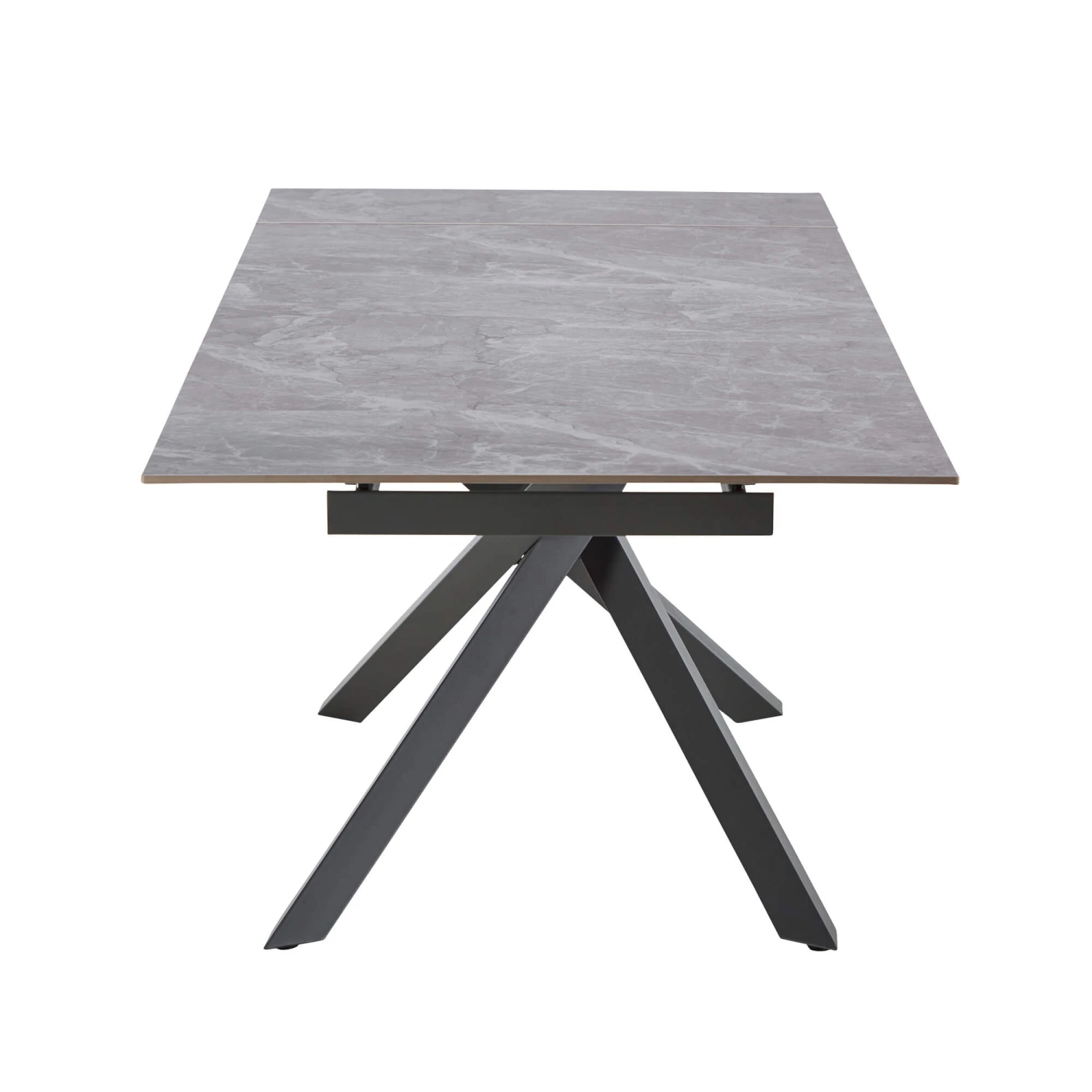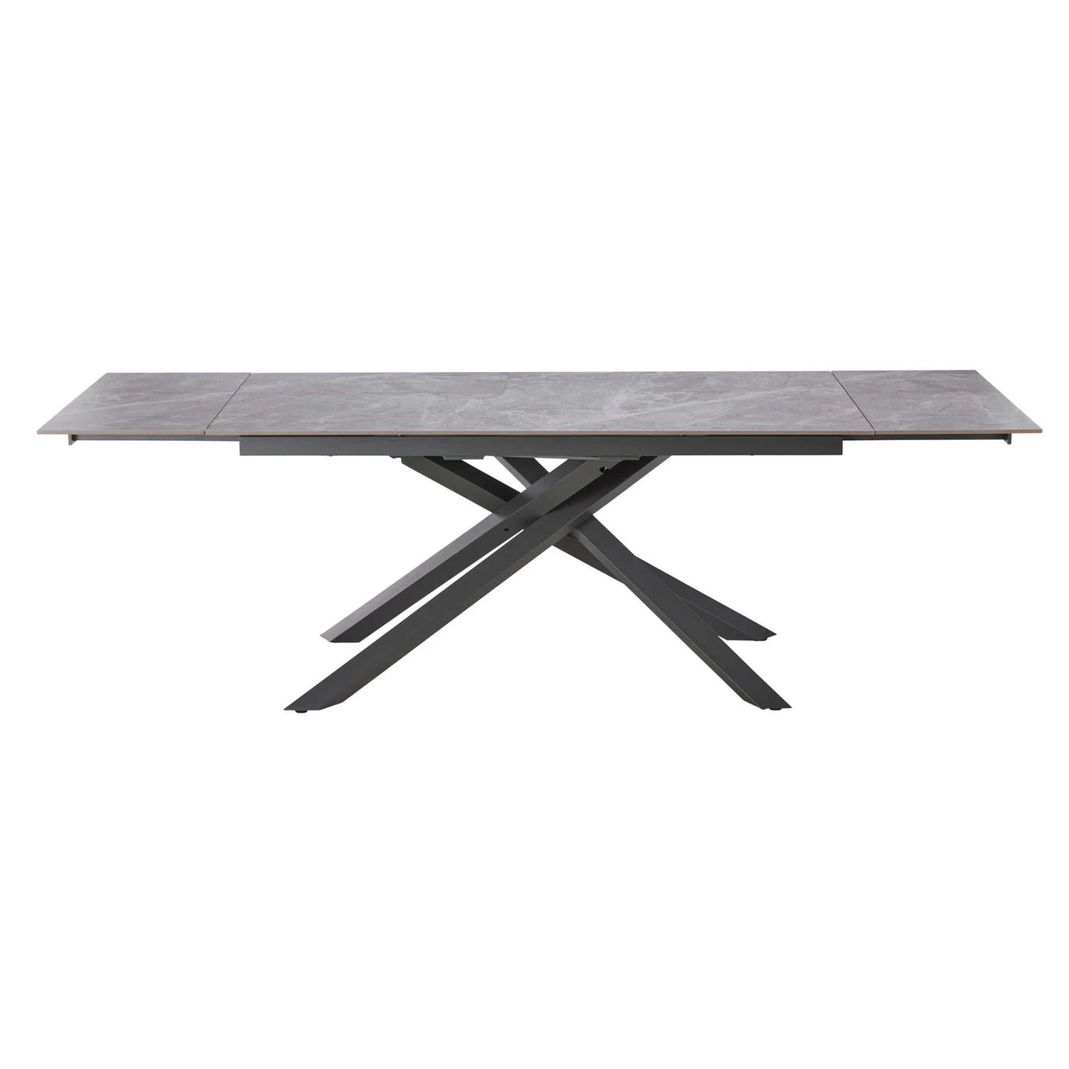 The Rossini dining table crafted in a beautiful matte grey with a dark grey crossover leg design for a contemporary elegant style that compliments sleek and sophisticated dining chairs and home interiors. The extending feature allows you to comfortably seat up to 6 people.