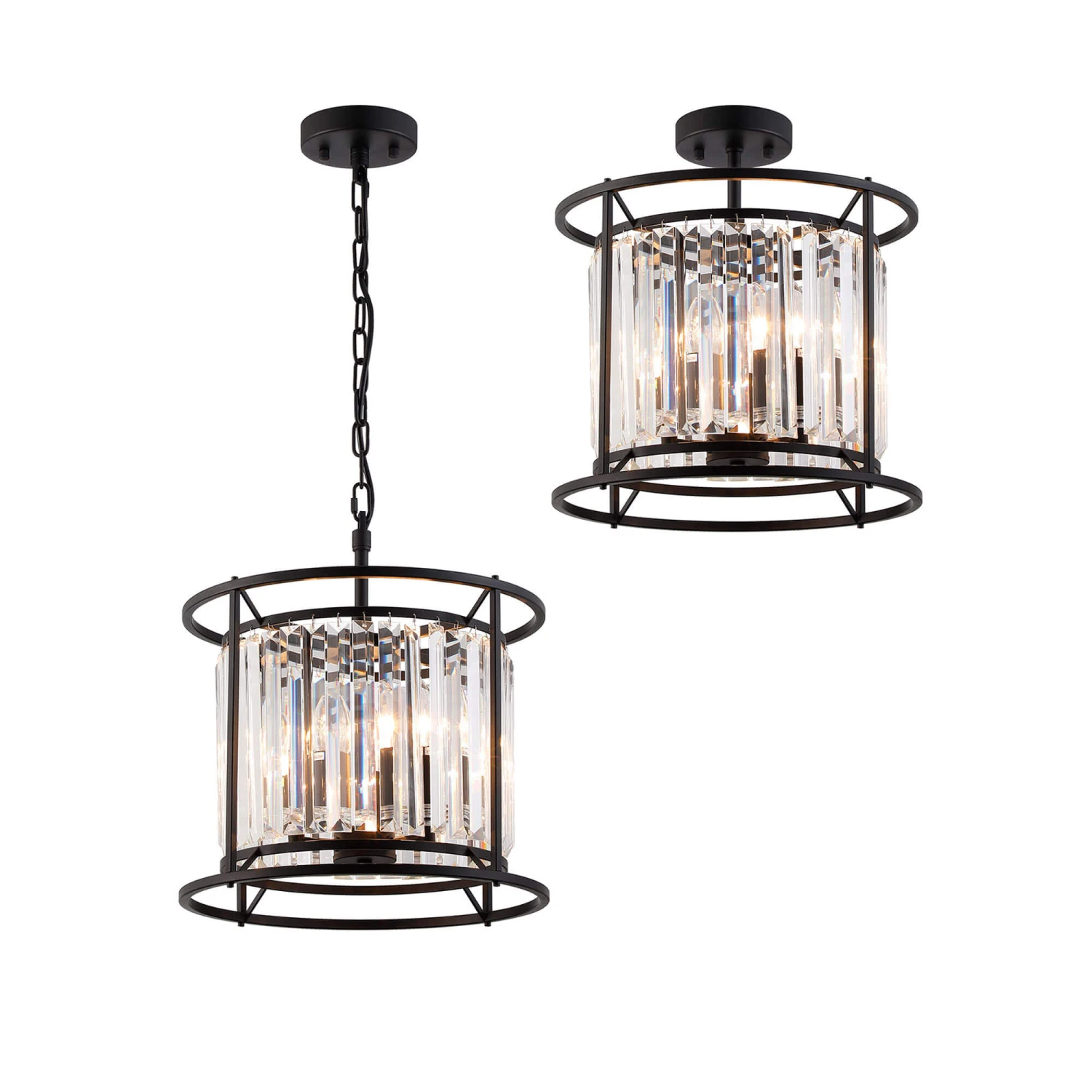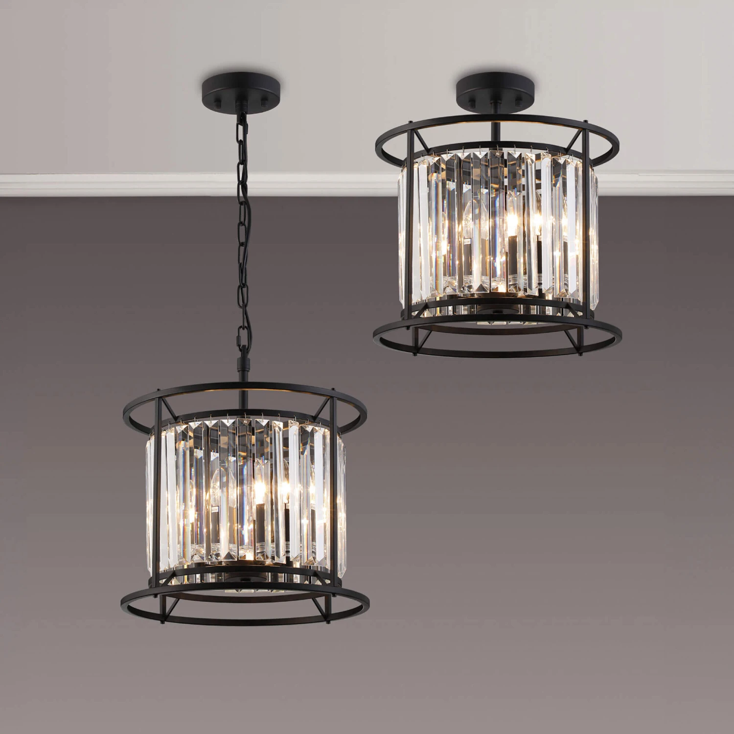 Radiate a warm and glamorous lighting to any room with the Samraat Satin Black & Crystal 3 Light Pendant. Illuminable by three E14 LED bulbs, this exquisite pendant light features a high-quality satin black iron base with a clear crystal shade, creating a dazzling effect when illuminated but still maintaining a stunning visual when switched off. Versatile in nature, this magnificent pendant light is convertible from a pendant light to a semi flush fitting and has an adjustable height of 48cm to 143cm, making it able to bring class and elegance to any given setting with its captivating design.