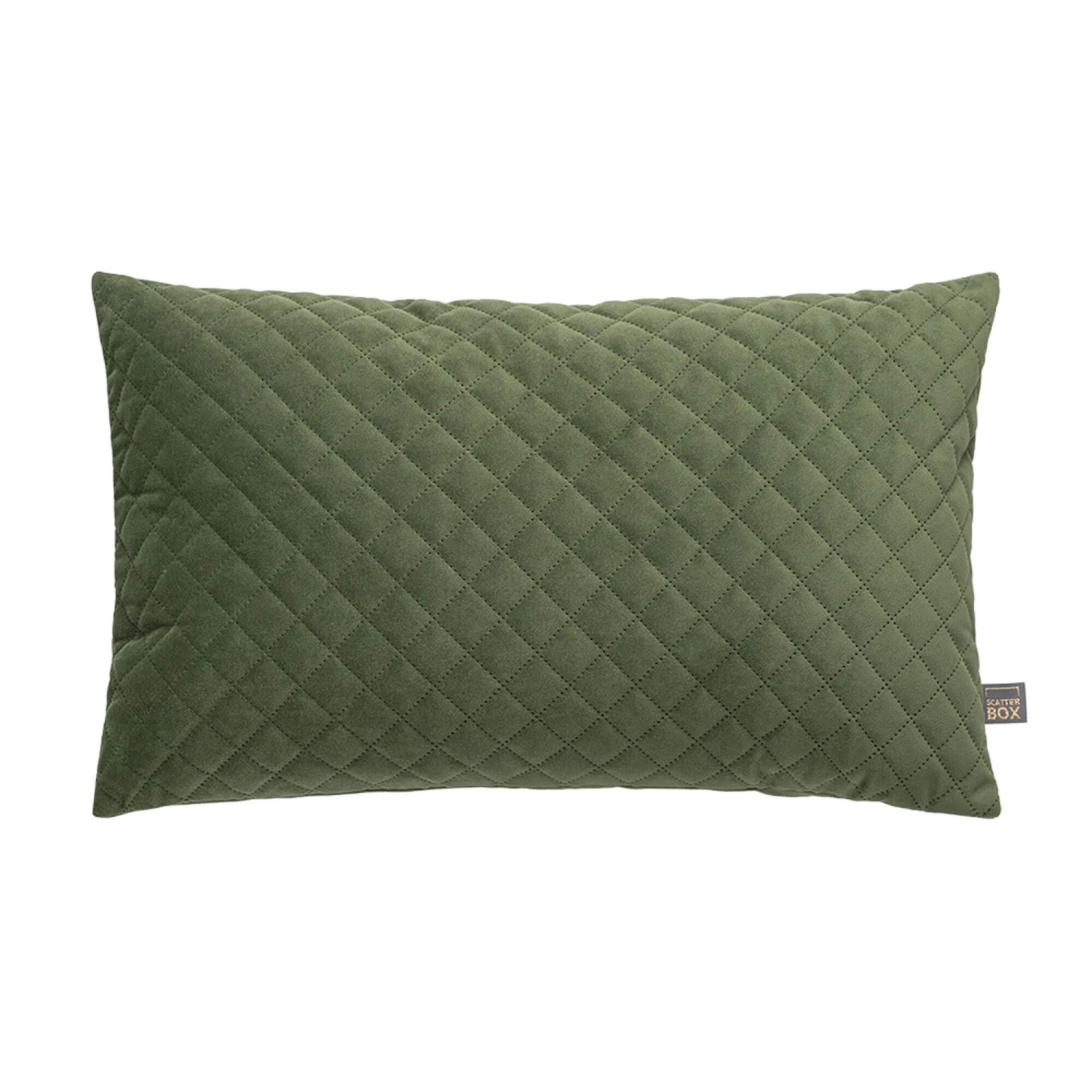 Made from 100% polyester with a luxurious feather filling, this Erin Earth Green Diamond Rectangular Cushion features recycled velvet fabric and subtle quilted geometric details, allowing it to contain character while maintaining simplicity. Available in two colours; earth green and spice, and two sizes; square and rectangular, this striking cushion has a zip closure and a coordinating reverse with a knife edge finish, perfect for adding bold colour and subtle texture to any room.
